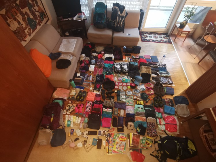 En fait, c’est pas tellement les habits qui prennent de la place et qui pèsent…mais tout le matériel annexe:
