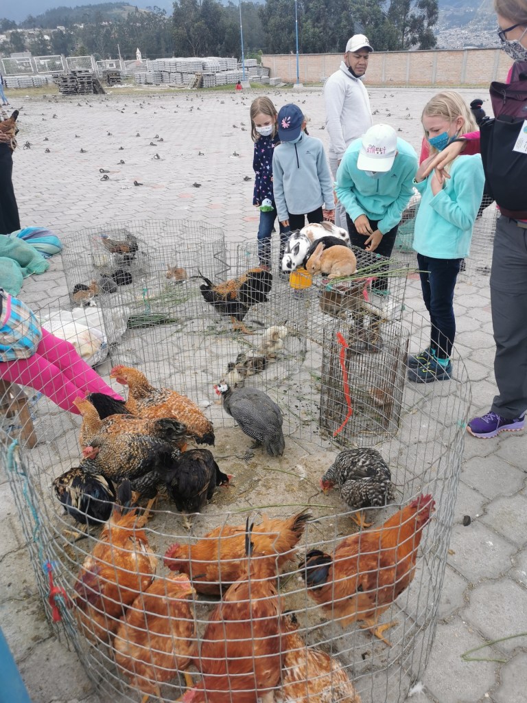 Après avoir vu les cuys se faire rôtir, nous voyons l’étape d’avant: les acheteurs qui soupèsent les bêtes pour les choisir…en fonction de leur graisse, et pas de leur capacité à attendrir un enfant…