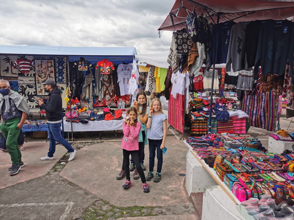 Une fois arrivés à Otavalo, nous retrouvons avec plaisir Anca, Emilien, Maëlys et Alicia Gauthier, la famille française en voyage pour une année.