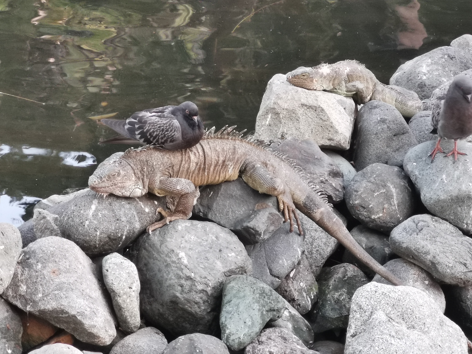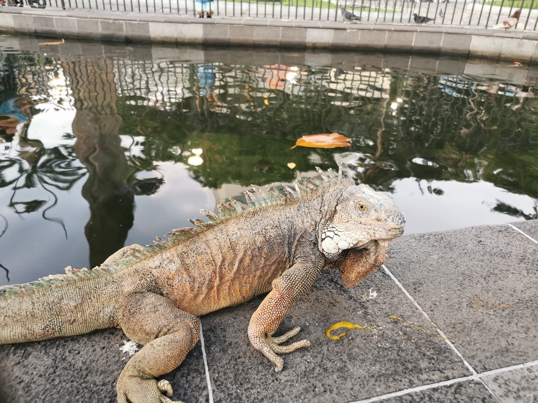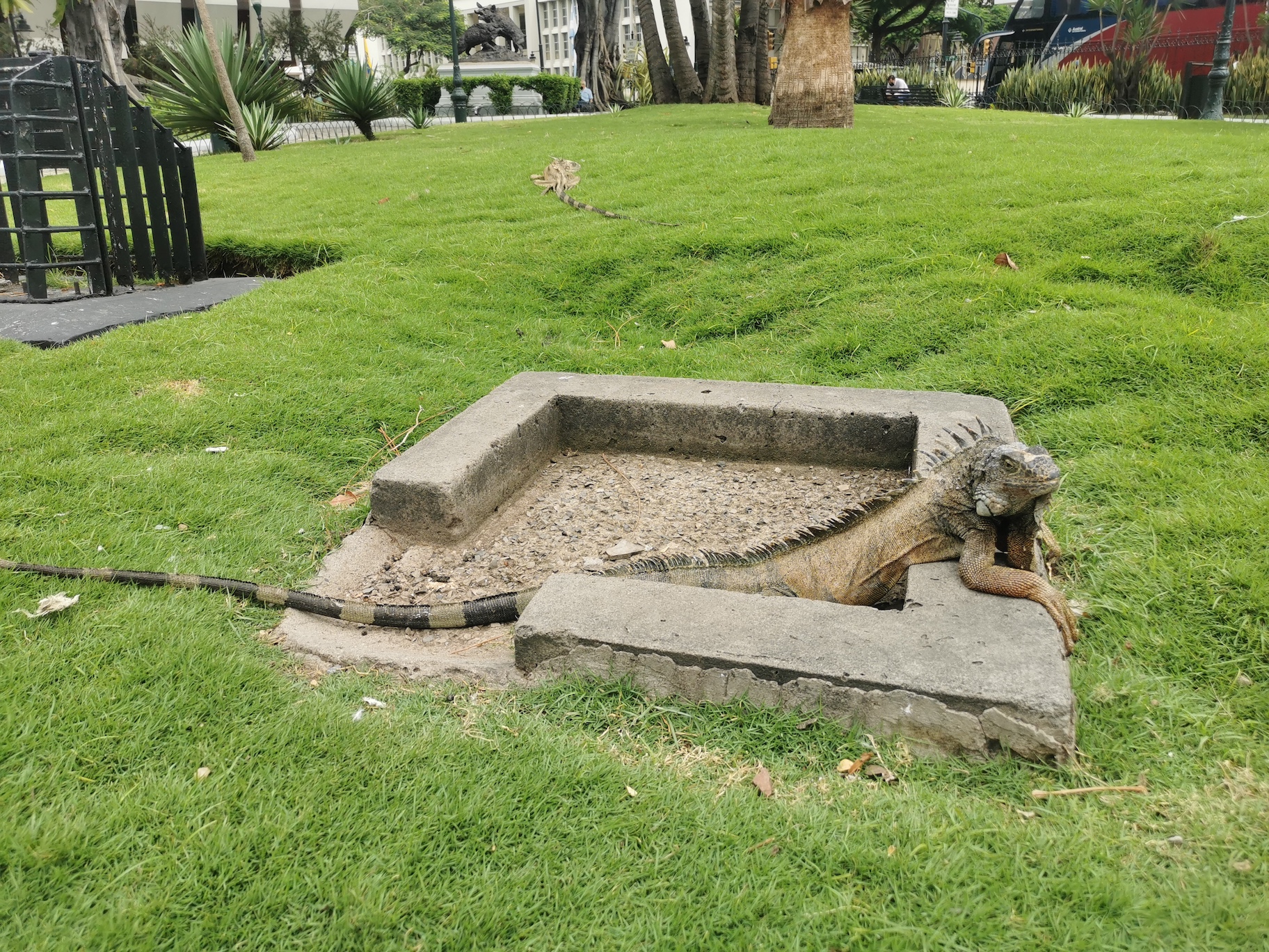 Nous en profitons pour visiter la ville qui nous plait plus que Quito. On nous a parlé d’un parc avec des iguanes en liberté, alors nous y commençons notre visite. Nous voyons nos premiers iguanes terrestres (mais vraiment pas les derniers 😜 ). C’est vraiment étrange de trouver cette colonie d’iguanes au milieu de la ville. Ils peuvent sans problème sortir du parc mais apparemment ils s’y plaisent.