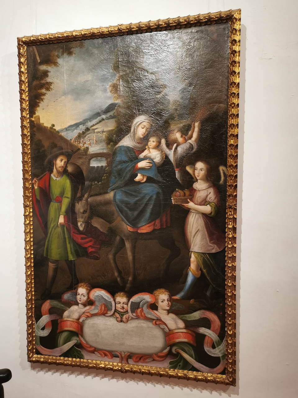Les murs de la première salle sont couverts de représentations de La Virgen del Cerro. Ces tableaux montrent bien le syncrétisme, courant à cette époque: mélange du christianisme avec les croyances locales. Le Cerro Rico était considéré par les locaux comme une importante divinité féminine andine et le plus petit cerro d’à côté comme son enfant. Il a donc été facile de « remplacer » cette divinité par la Vierge avec une robe triangulaire symbolisant la montagne.
