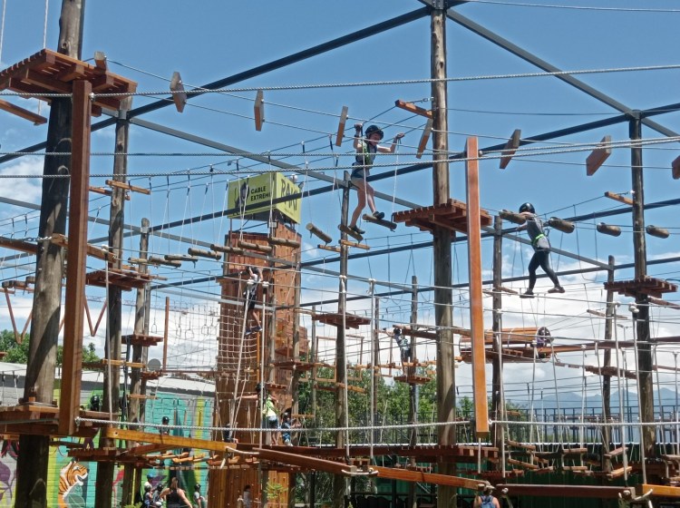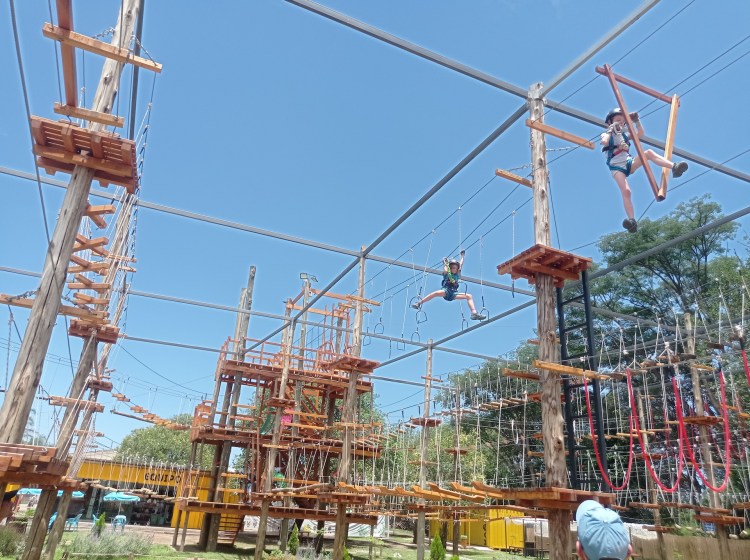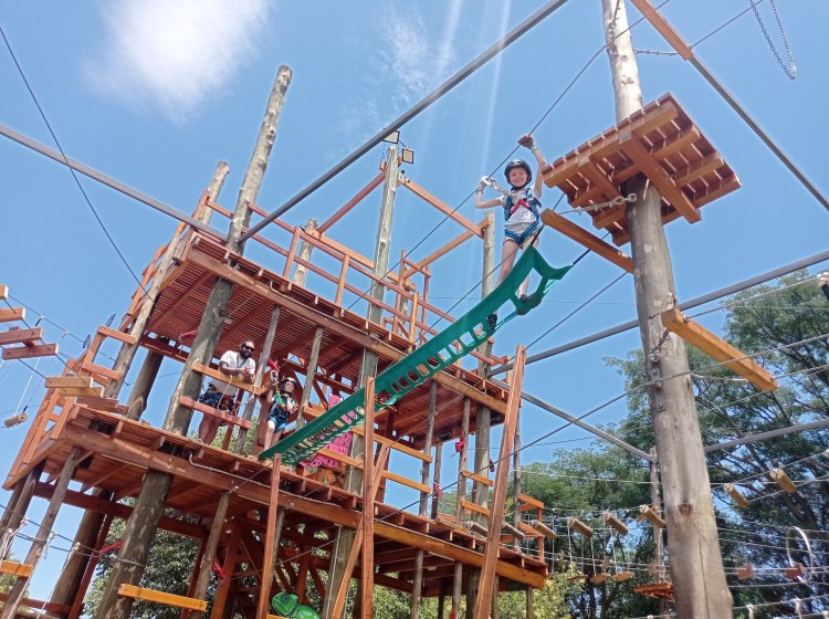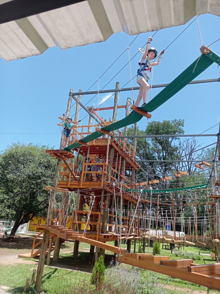 Après 20 minutes de marche et 45 minutes de bus, nous voici arrivés à notre première destination: un accrobranche! Il a été construit tout récemment en s’inspirant de…la Suisse! En effet, celui qui a créé ce concept, assez récent en Argentine, est Suisse. Contrairement à l’Europe, cet accrobranche ne se trouve pas dans une forêt, mais tout les parcours font partie d’une structure artificielle.