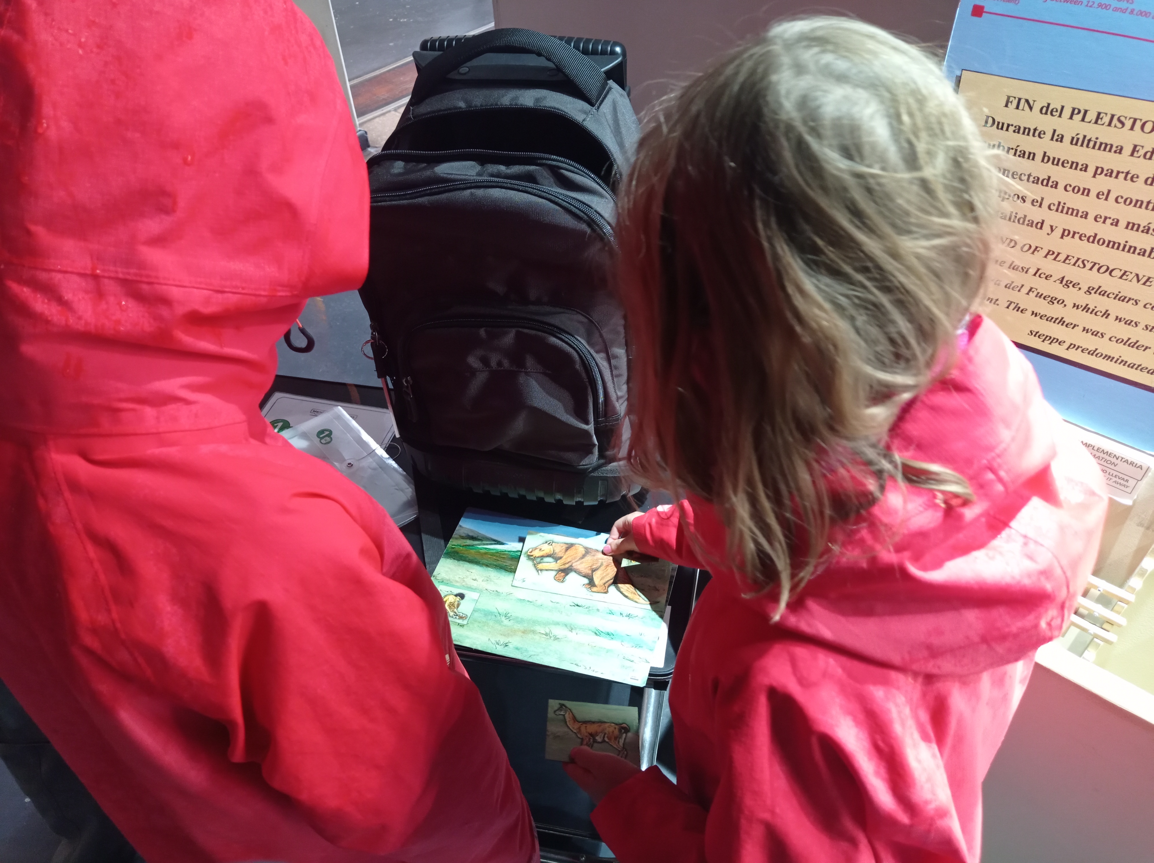 Nous décidons rapidement de nous rendre au petit Museo del fin del mundo qui ferme à 17h. Le musée est vraiment petit mais intéressant. Nous aurions pu le visiter en 20′, mais c’était sans compter sur une étonnante mallette conçue pour les enfants ! Celle-ci contient 8 sachets avec des activités correspondant à certaines vitrines ! C’est top pour intéresser les filles… Et les adultes ! C’est donc parti pour 1h de découverte sur l’histoire, la culture ancestrale, la faune et la flore d’Ushuaïa.