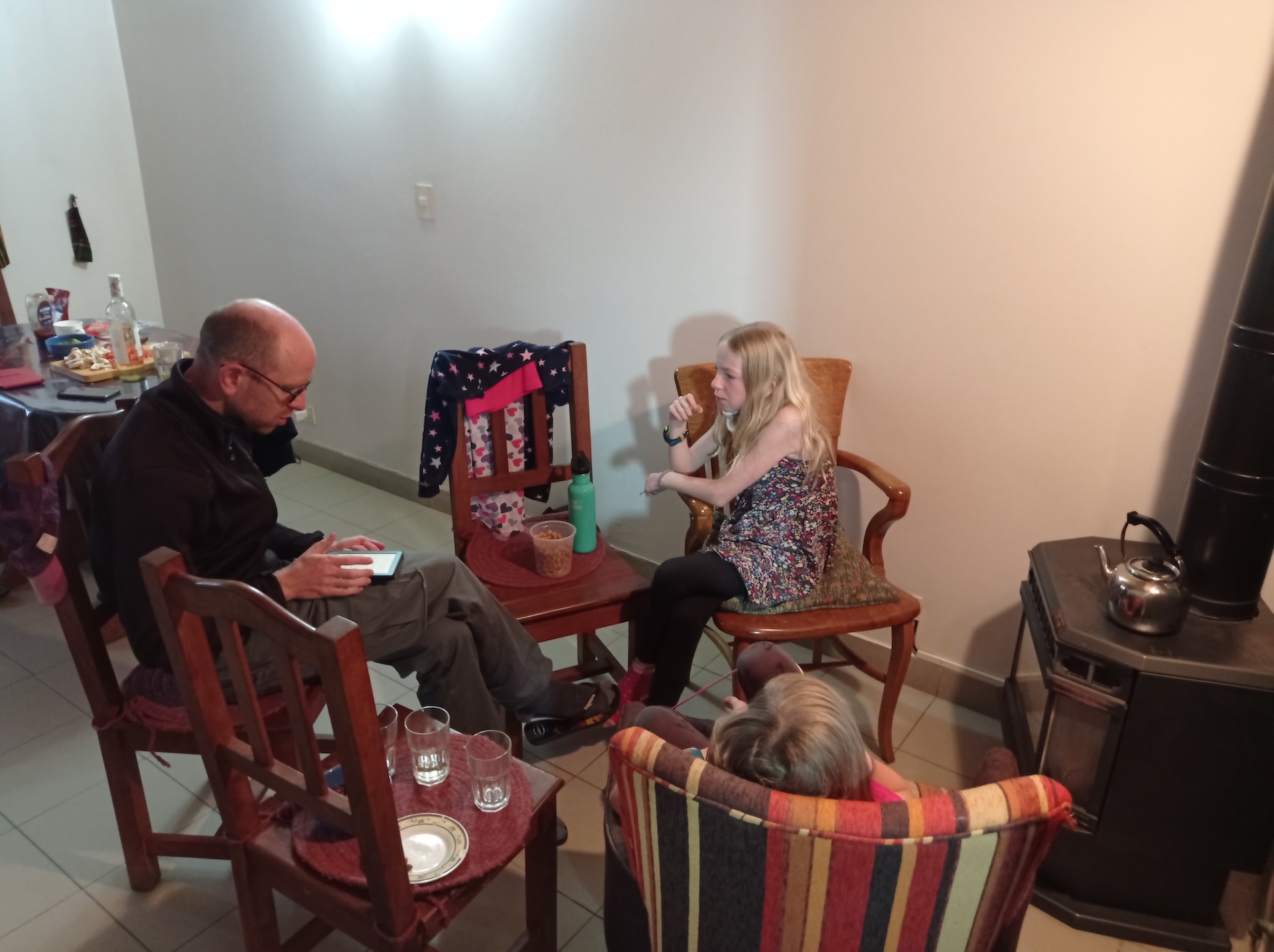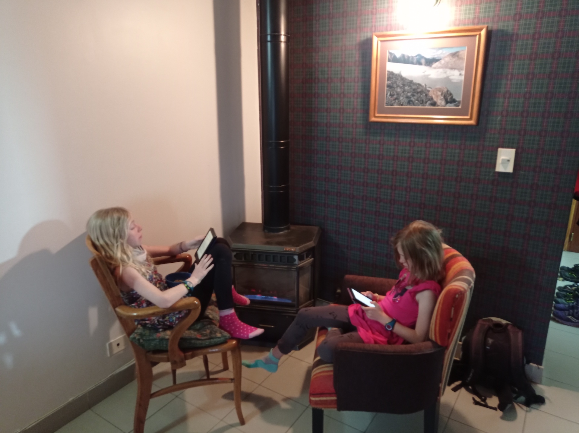 C’est notre deuxième jour au bout du monde et nous nous réveillons avec enthousiasme… Mais il pleut des cordes dehors et le vent souffle fort. Nous décidons donc de profiter de cet appartement douillet jusqu’à la fin de la pluie avec au programme : pancakes, école, lectures, film, blog, etc. Pour finir, nous devrons attendre 16h pour sortir… Et encore, il pleuvine et le vent n’a pas diminué ! 🙃