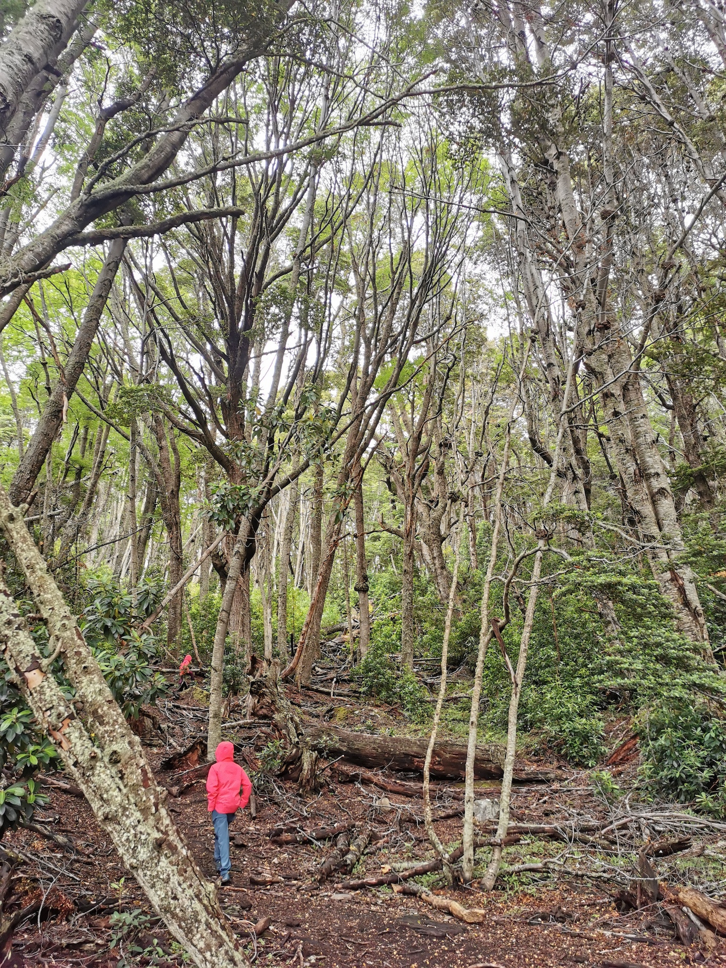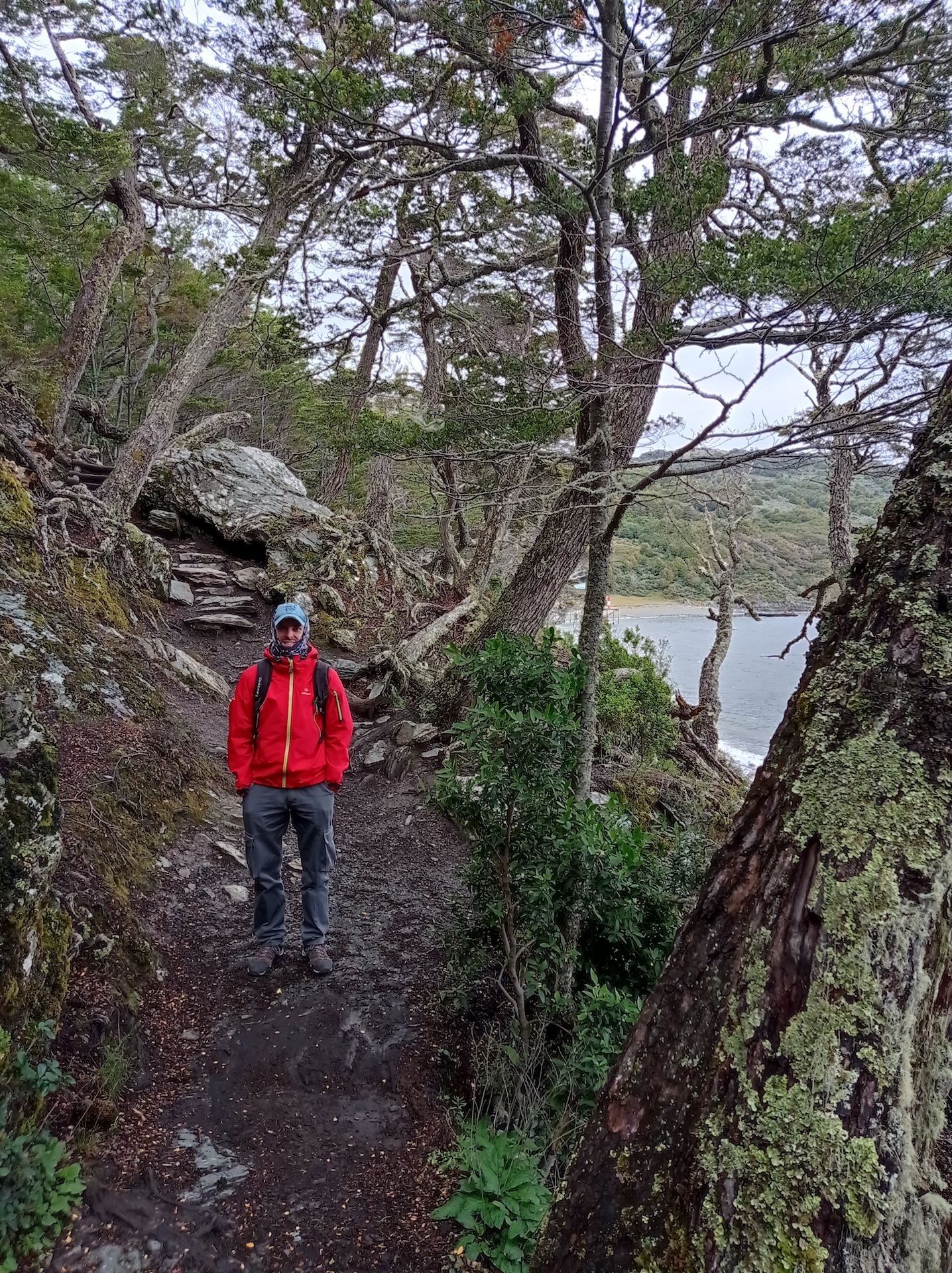 Le sentier zigzague beaucoup, et nous sommes donc parfois au bord de l’océan et parfois au milieu de la forêt, cette variété de paysages est très sympa. Le chemin monte et descend et comme le sol est mouillé, il nous faut régulièrement être prudents.