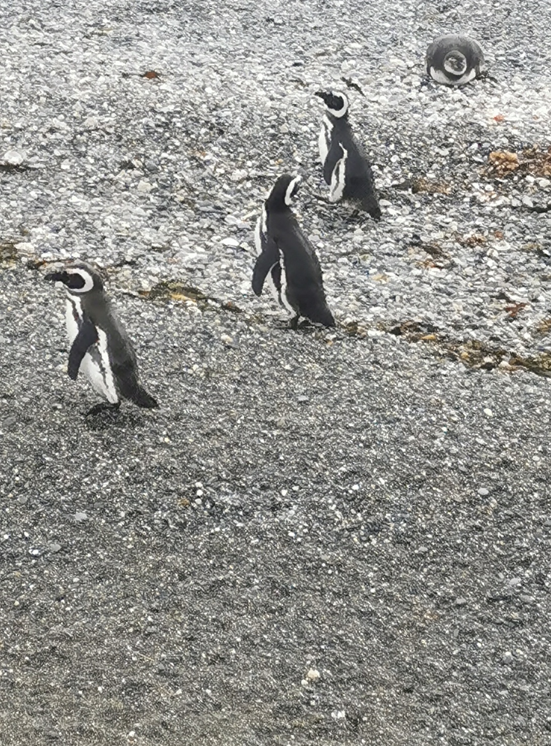 Sur ces terres, nous avons pu voir trois sortes de manchots : le manchot de Magellan, le manchot Papou et même un manchot Empereur ! Il était magnifique, mais trop loin pour le prendre en photo ! C’est un couple français qui nous l’a indiqué et qui nous a gentiment prêté ses jumelles pour pouvoir l’observer.