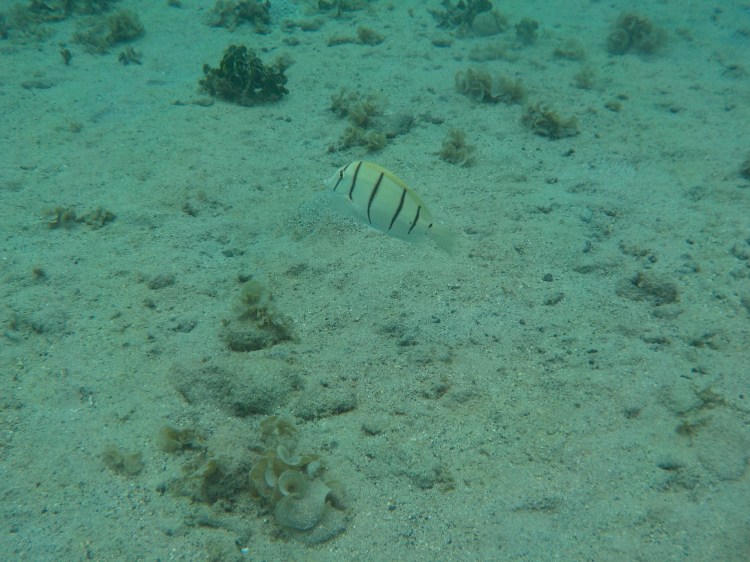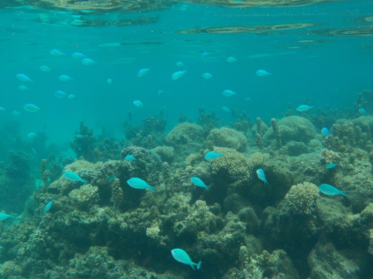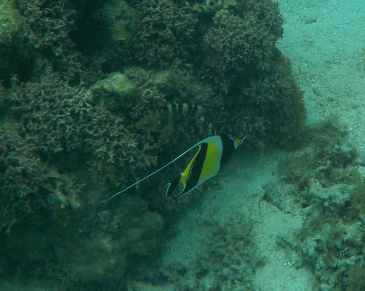Pour cette nouvelle journée qui arrive, ayant à peu près récupéré du voyage et du décallage horaire, nous décidons de partir à la découverte de l’île. le but est d’alterner les visites de certains lieux intéressants et les baignades. Notre départ étant plus tardif qu’escompté, nous commençons par nous rendre à la plage de Vaiava, aussi appelée PK18 ou point kilométrique 18 (souvent les lieux d’intérêts sont reliés à leur point kilométrique sur Tahiti). C’est une jolie plage publique avec parking, toilettes et douches ainsi que gazon pour se poser et pique-niquer. Cerise sur le gâteau, la plage a aussi un jardin de corail avec de jolis poissons. C’est pour nous le premier d’une longue série d’émerveillement à observer la vie maritime de Polynésie!