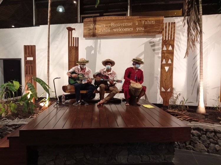 Malgré l’heure tardive, nous sommes accueillis en musique 😄 et cela nous met tout de suite dans l’ambiance des îles. La suite est moins sympathique car nous devons tous faire un test PCR et comme Estelle les appréhende énormément, nous mettons beaucoup de temps à passer cette étape… Une fois les formalités administratives passées, nous récupérons notre voiture de location et nous nous rendons à notre logement, un peu en dehors de Papeete. Après quelques mauvaix choix de bifurcation (Google Maps avait mal placé le lieu), nous arrivons enfin, à près de 1h du matin, à notre petit bungalow dans les hauteurs. Nous ne tardons pas à rejoindre nos lits, impatients de découvrir Tahiti à la lumière du jour!