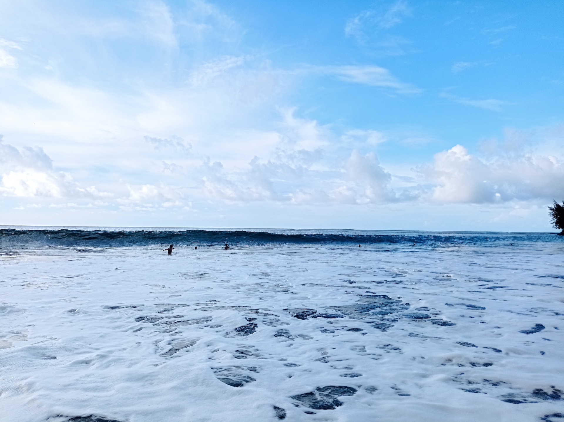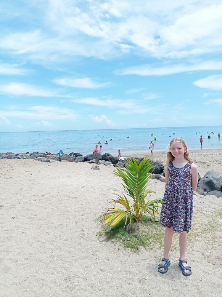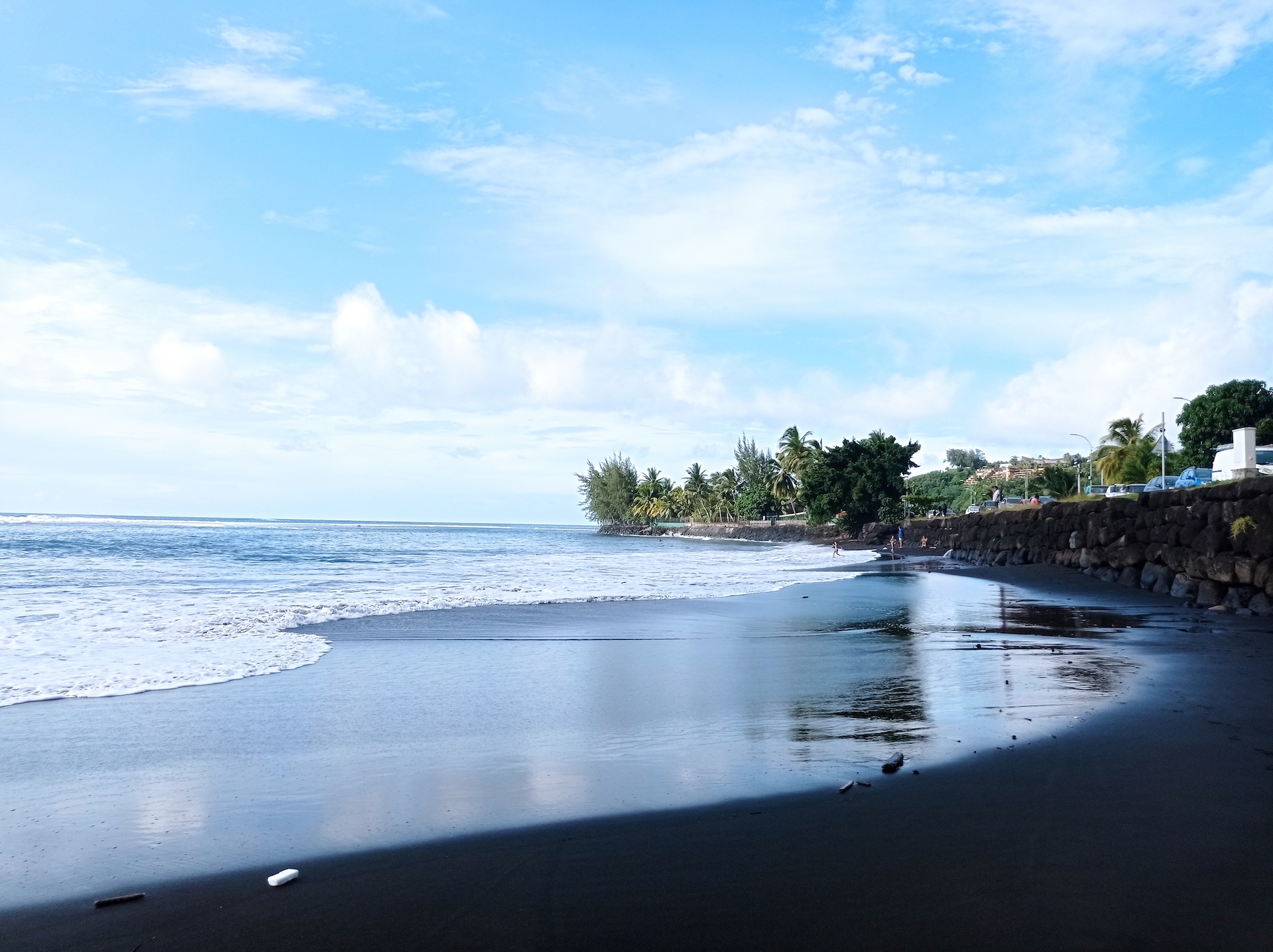 Une fois nourris et reposés, notre deuxième objectif de la journée est de trouver une plage pour nous baigner. Peu attirés à l’idée d’aller trop loin, nous visons la plage Lafayette, très proche de notre logement. Nous découvrons une jolie plage de sable noir avec une eau à la température idéale mais assez agitée car les vagues y sont énormes. Les filles s’y trempent à moitié, peu rassurées par les grosses vagues qui viennent régulièrement se briser proches de nous. De notre côté, nous testons les vagues, et franchement, heureusement que les filles n’y sont pas allées… Ca secoue bien! 🙃