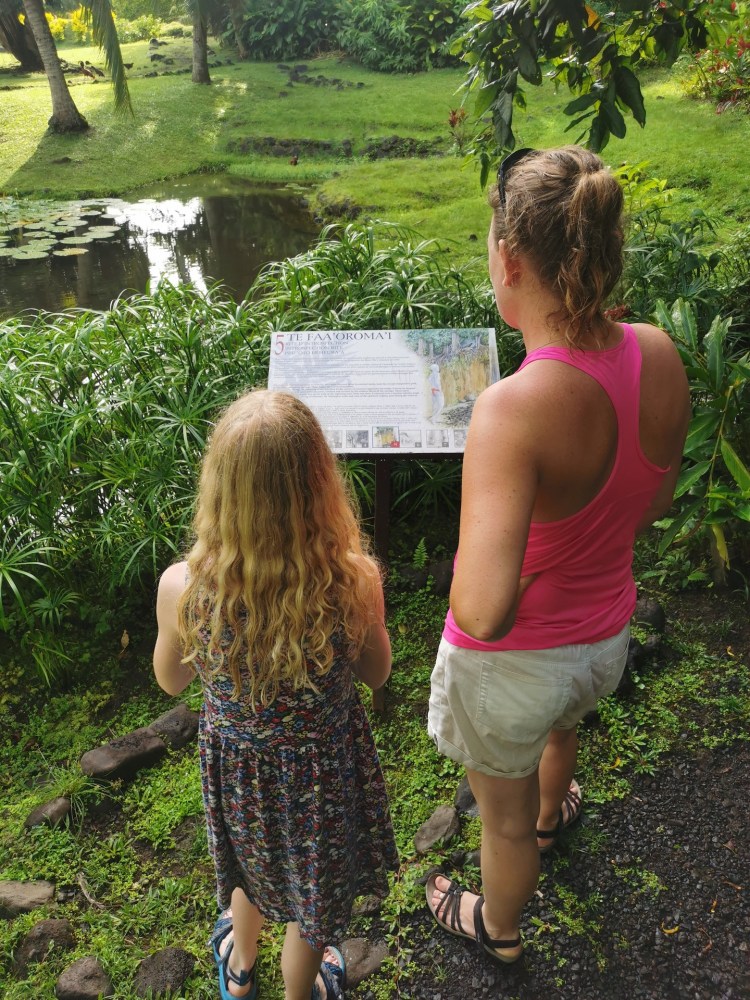 Après cette première rencontre avec les fonds marins tahitiens, nous partons découvrir la suite de l’île. Les prochains arrêts sont les Marae Ta’Ata et Arahurahu. Les Marae étaient des espaces réservés aux activités cérémonielles, sociales et religieuses des anciens Polynésiens. Ils formaient des monuments de dimensions différentes qui suscitèrent l’intérêt des observateurs européens de la fin du 18ème siècle. Nous en observerons sur toutes les îles que nous visiterons.