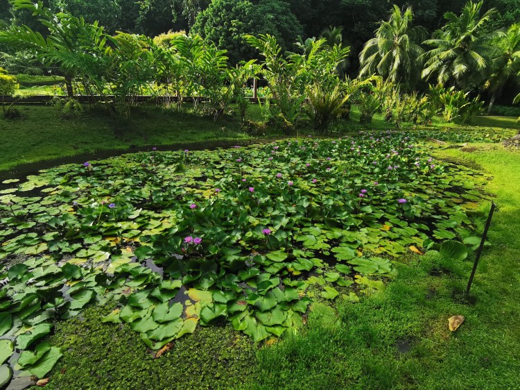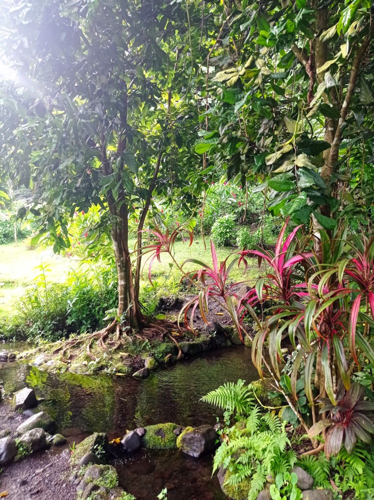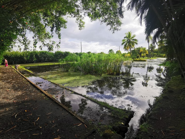 De retour dans la voiture, nous poussons plus au sud de l’île pour aller voir les jardins d’eau de Vaipahi. C’est un petit jardin botanique où la sérénité et le calme dominent. Nous passons un très bon moment à déambuler dans le parc et à découvrir les différentes espèces végétales endémiques.