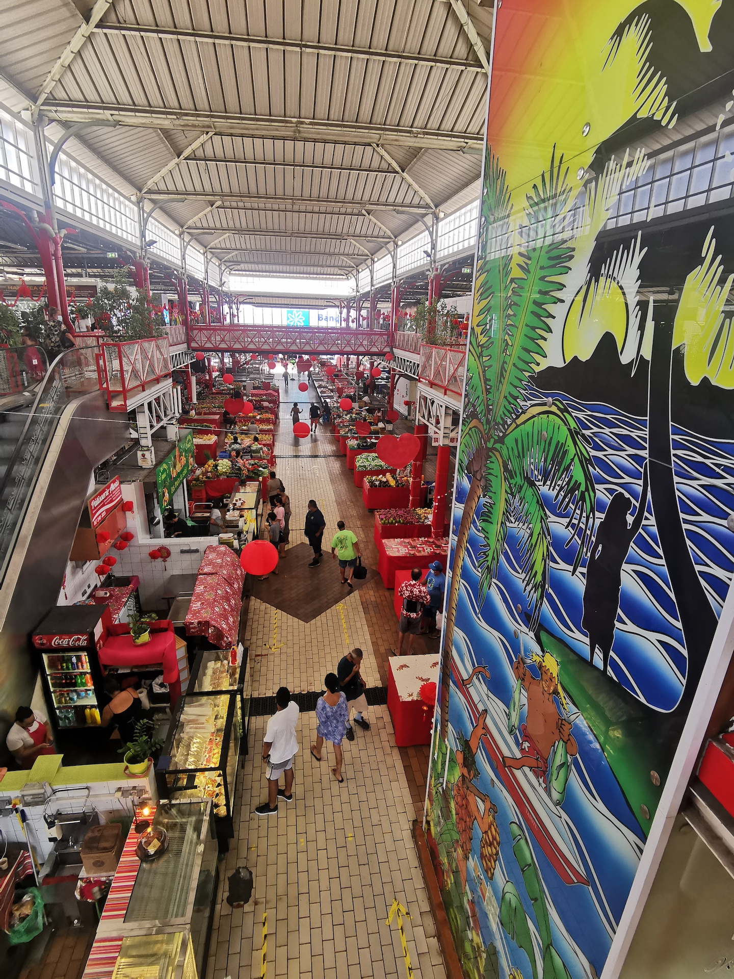 Pour rester dans le domaine culinaire, nous débutons cette nouvelle journée avec un tour au marché de Papeete. Bon, pas aux aurores, hein! Il nous faut encore un peu récupérer de notre voyage et le réveil est toujours assez difficile. Du coup, nous n’avons pas énormément de stands présents, mais nous trouvons quand même un cousin du litchi, le ramboutan, ainsi que plusieurs autres fruits qui vont ravir nos papilles gustatives durant la journée.