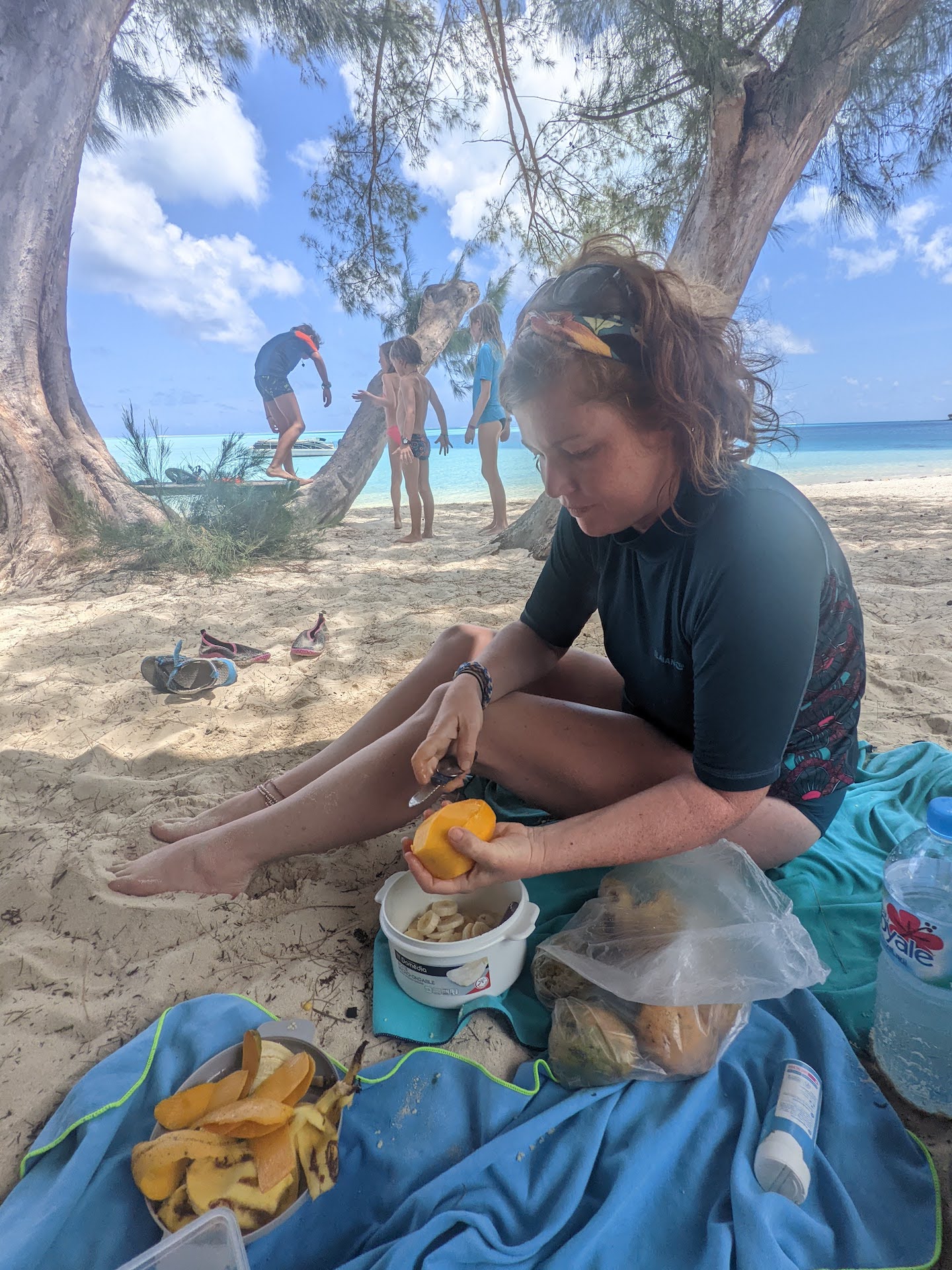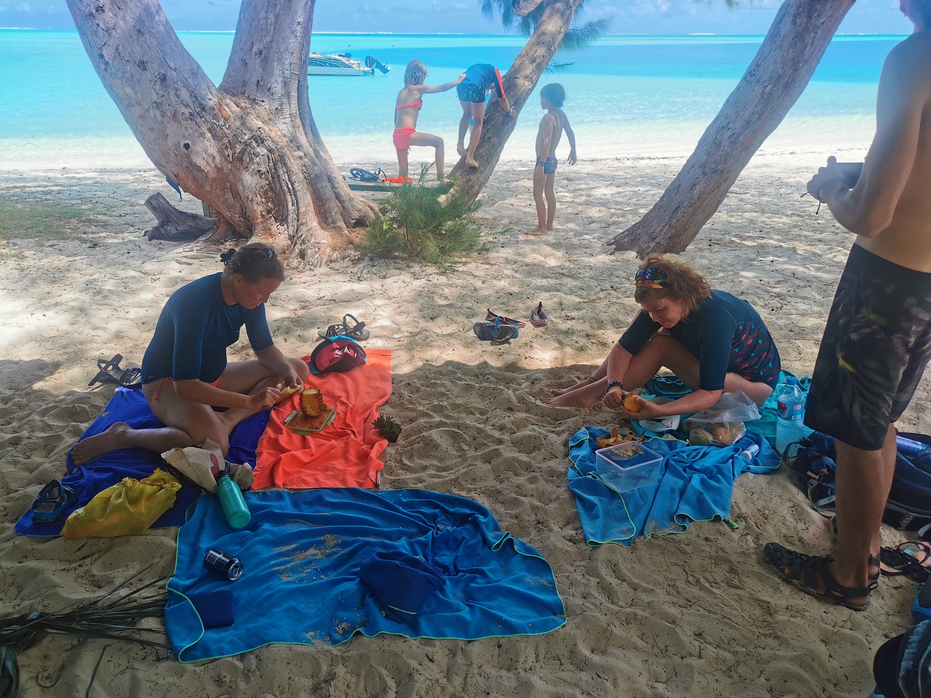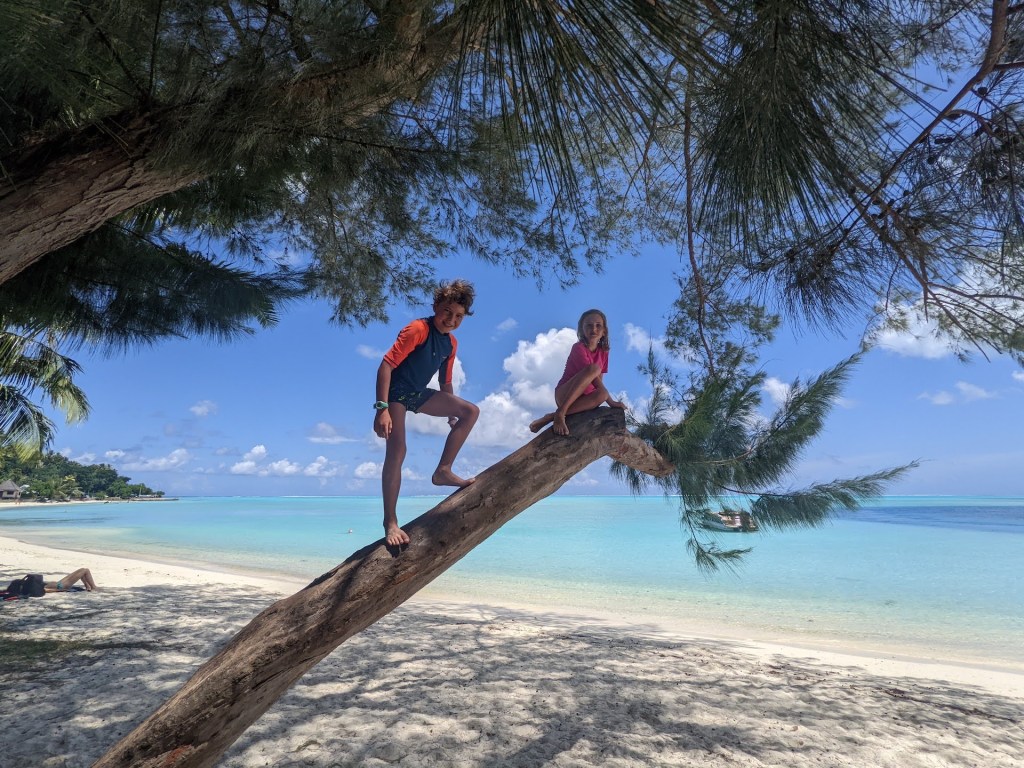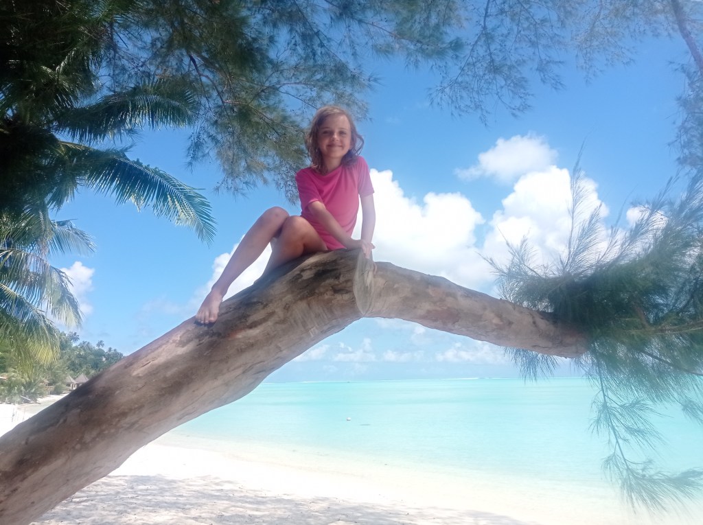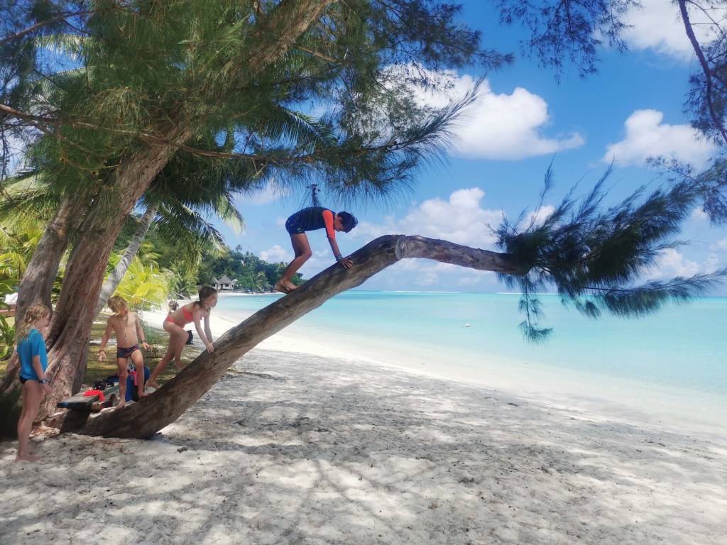 Après un petit apéro au beach club, nous nous rapprochons du spot de snorkeling pour manger notre pique-nique à l’ombre d’un palmier que les enfants (et adultes) ont aimé escalader.