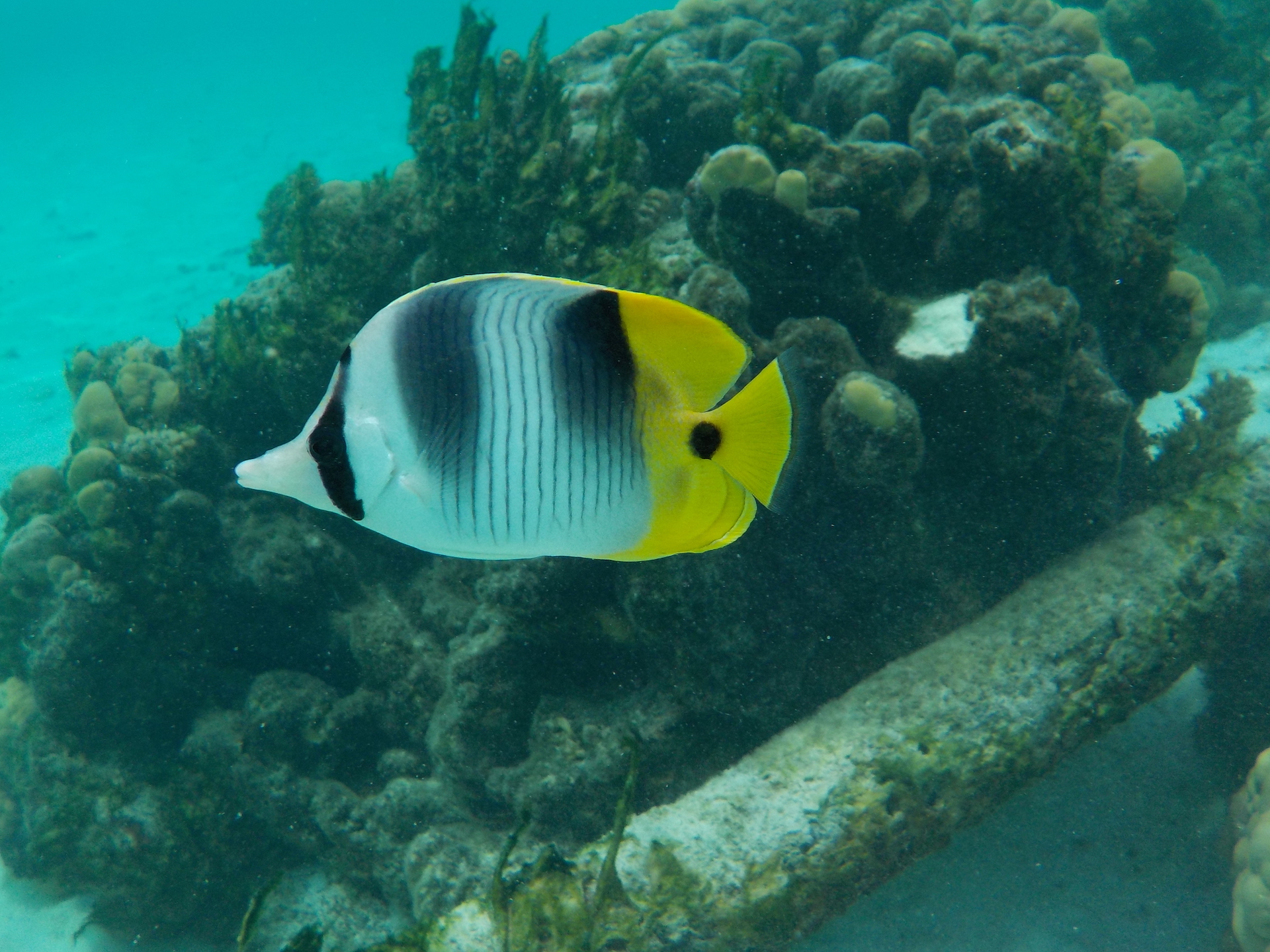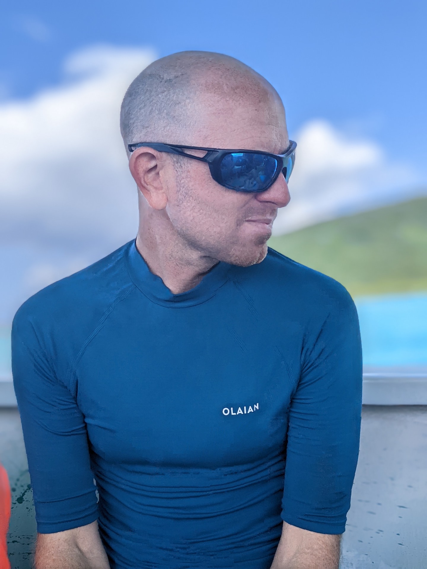 Nous arrivons rapidement au site de snorkeling. Au moment d’entrer dans l’eau, nous constatons avec déception que l’équipe du bateau attire les poissons avec du pain 😔. C’est sûr que c’est impressionnant de nager au milieu d’un banc de poissons, mais ce n’est pas bon pour l’écosystème du lieu: la nourriture n’est pas adaptée à la faune, les jeunes poissons n’apprennent plus à se nourrir naturellement et deviennent dépendant des humains, le contact avec les humains peut leur transmettre des virus contre lesquels ils ne sont pas immunisés, etc.
