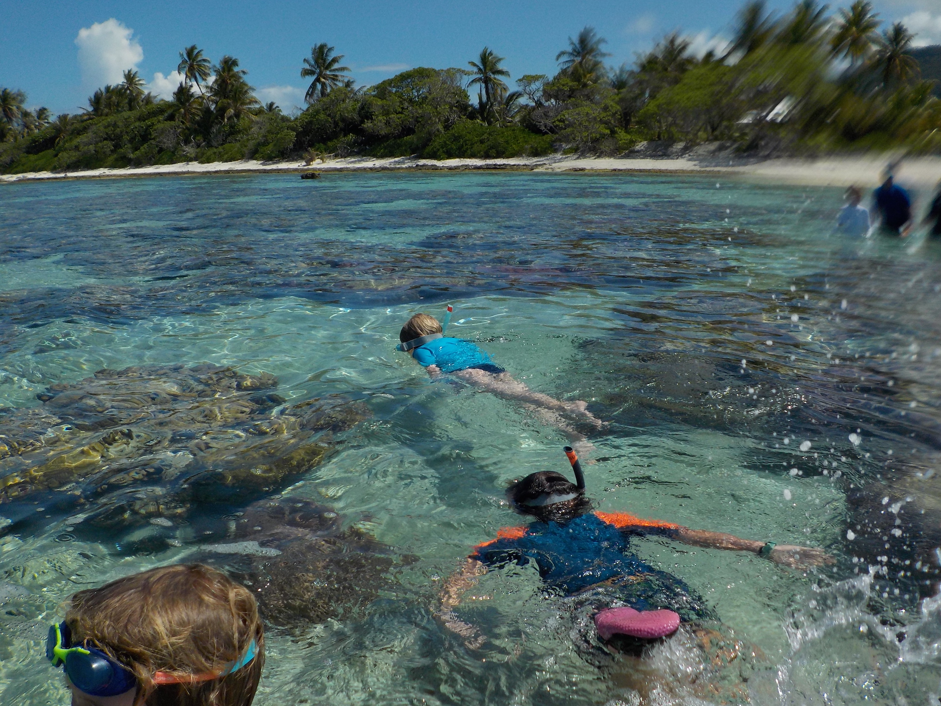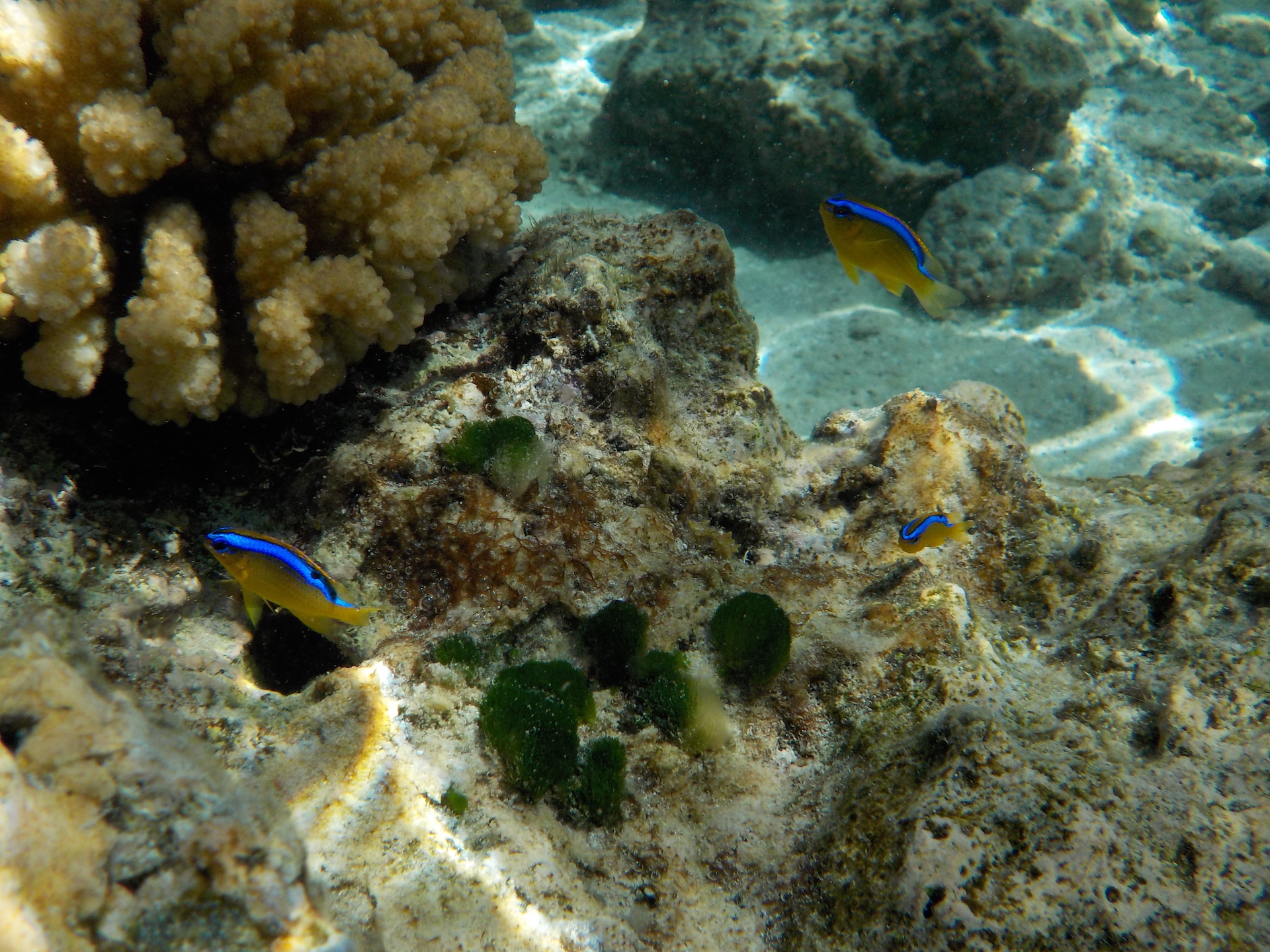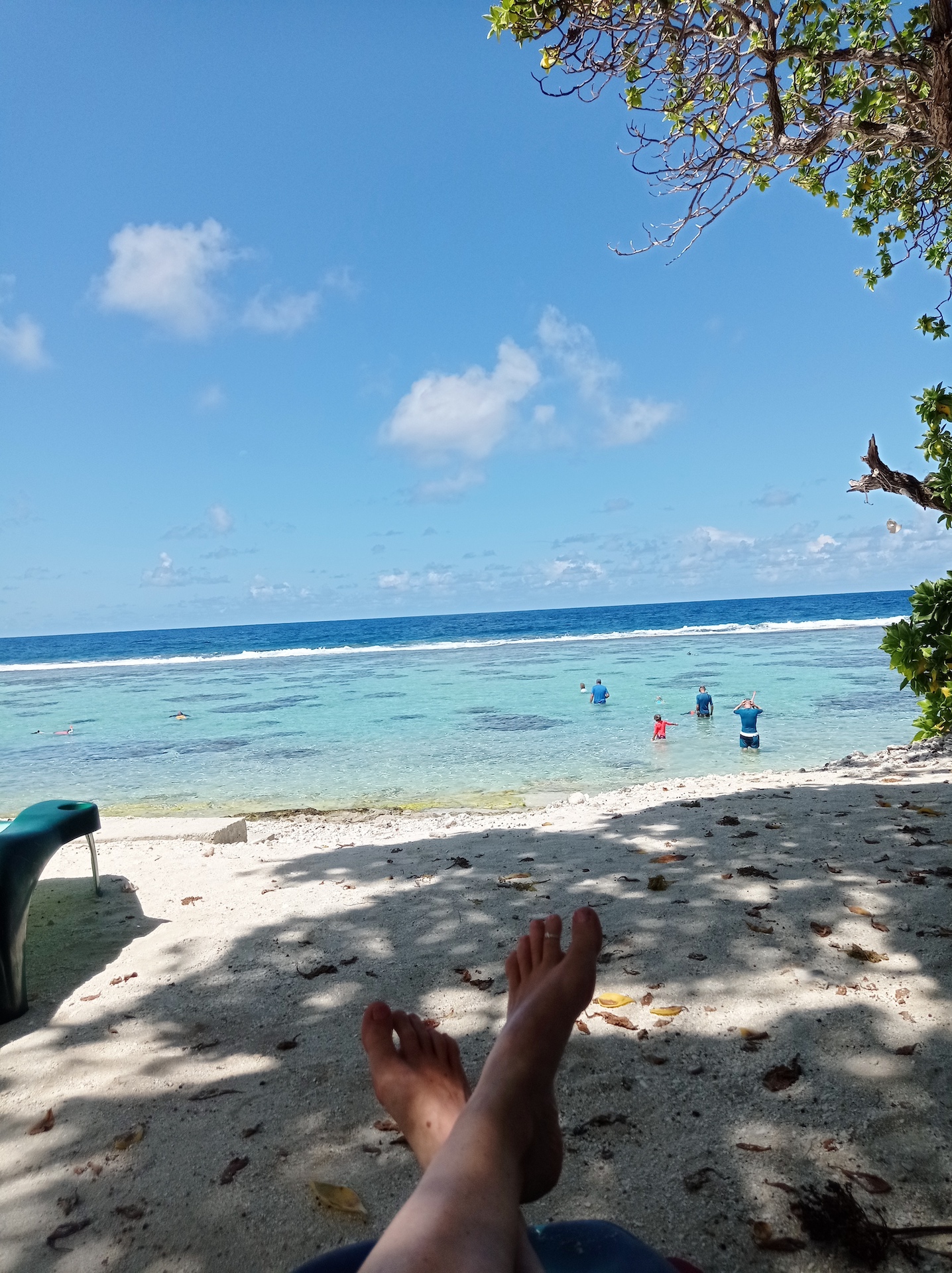 Après le repas, vient le moment de la digestion avec repos ou snorkeling, sur le côté opposé du motu où il y a du corail, et donc des poissons.