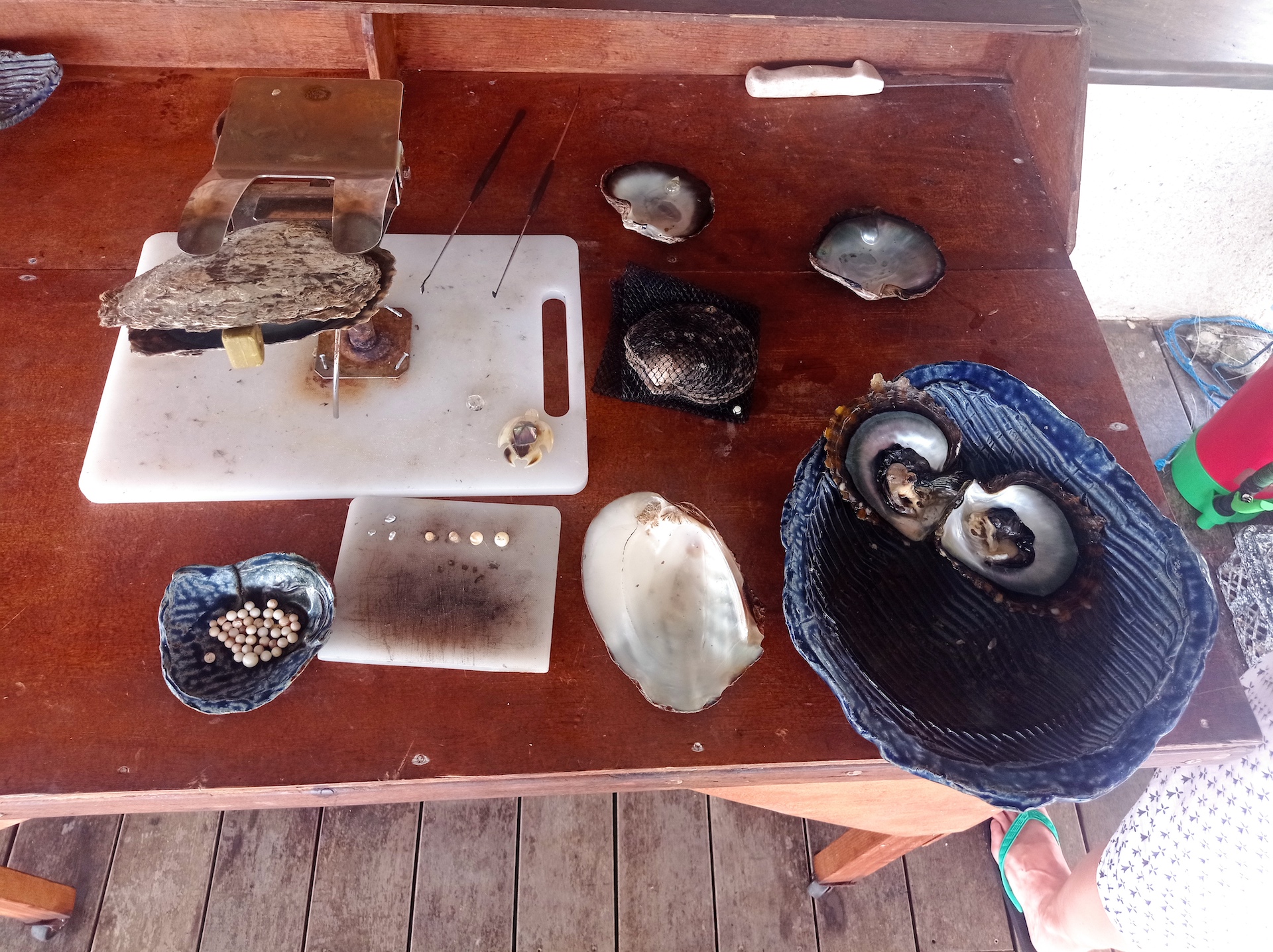 Comme le tour est conçu pour nous faire découvrir les différents aspects de l’île, c’est maintenant au tour de la visite d’une ferme perlière. En arrivant, le guide nous dit « Messieurs, préparez votre carte bleue pour faire plaisir aux femmes » … Bref nous n’avons pas vraiment les mêmes valeurs 🙃.