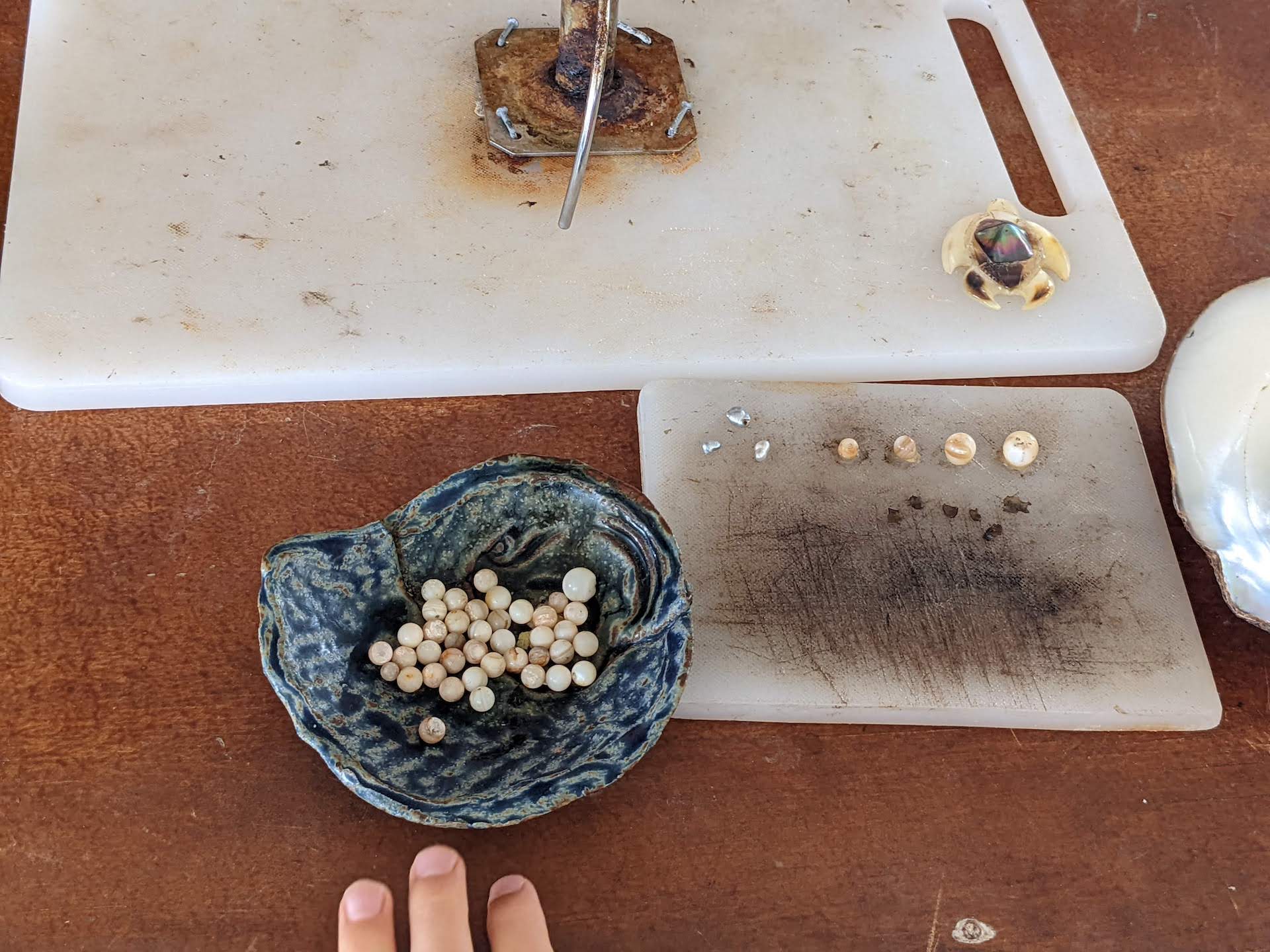 – un kechi: c’est une bille de nacre produite lorsque l’huitre a rejeté le nucleus. Elle a une forme toute biscornue.
