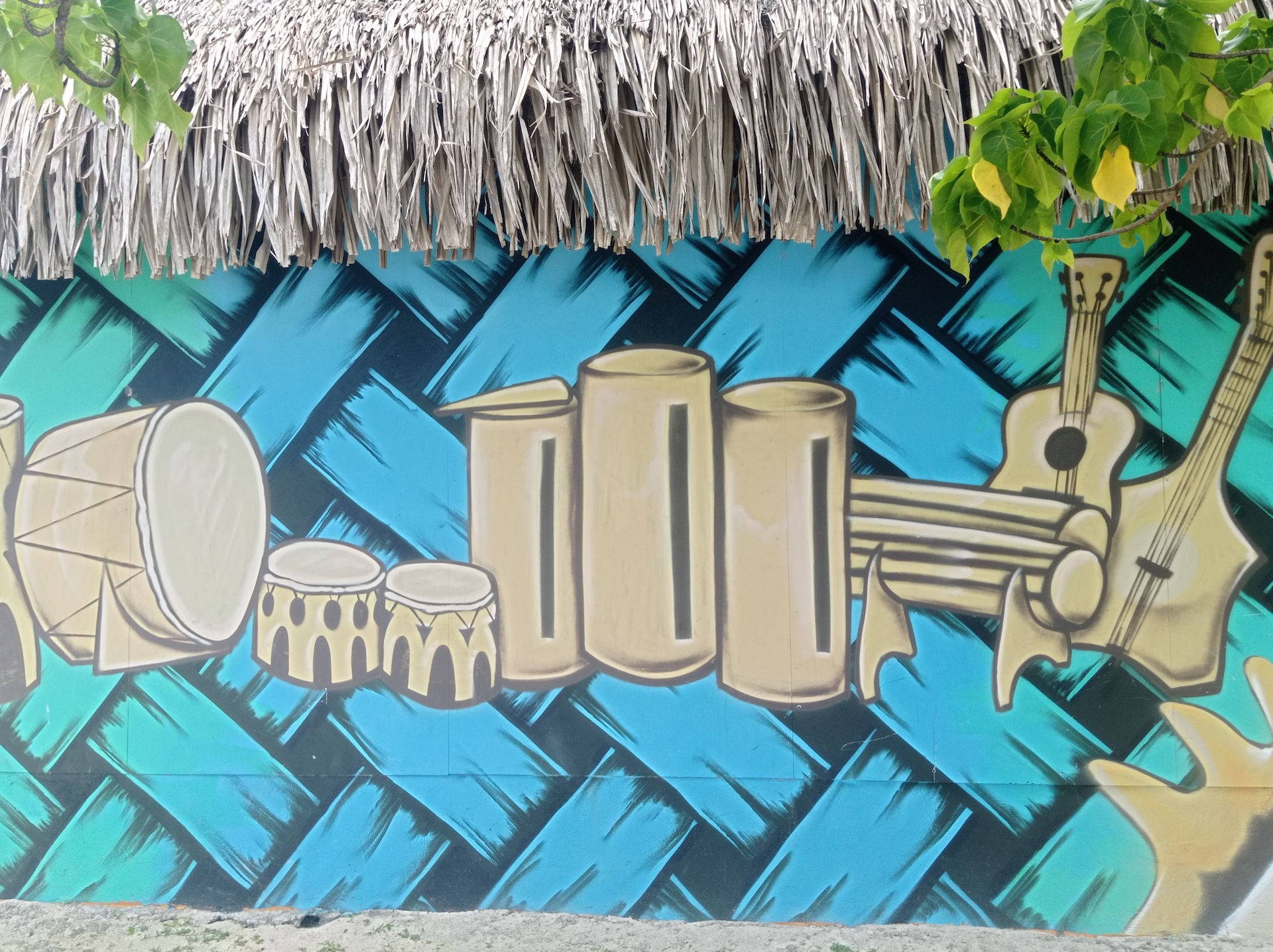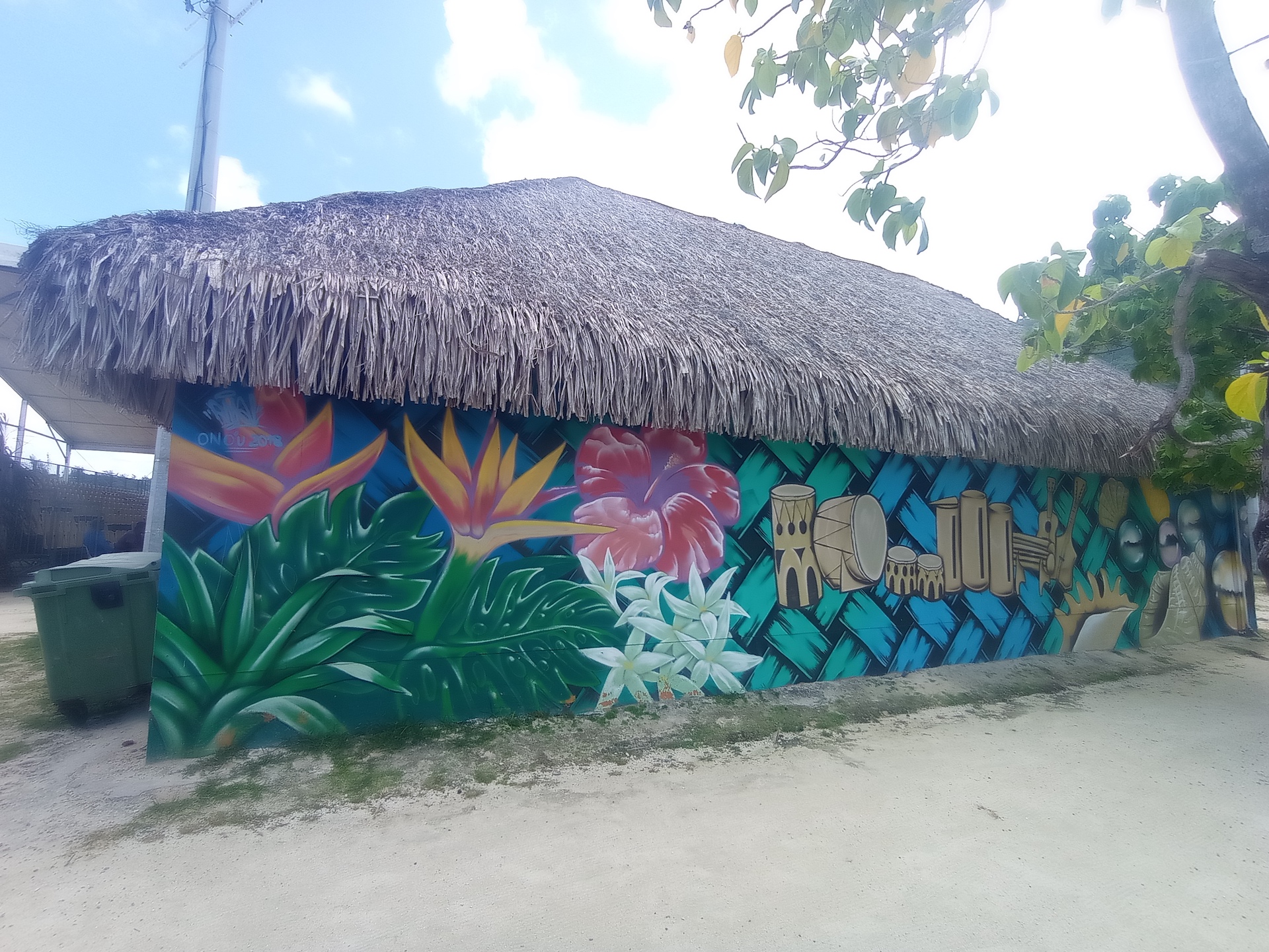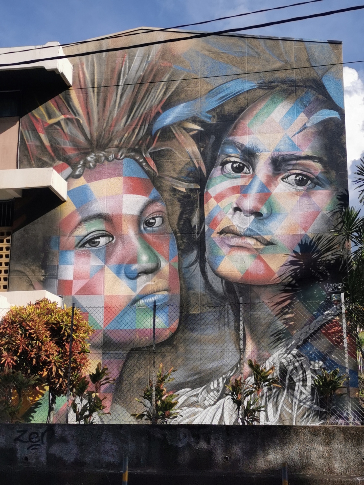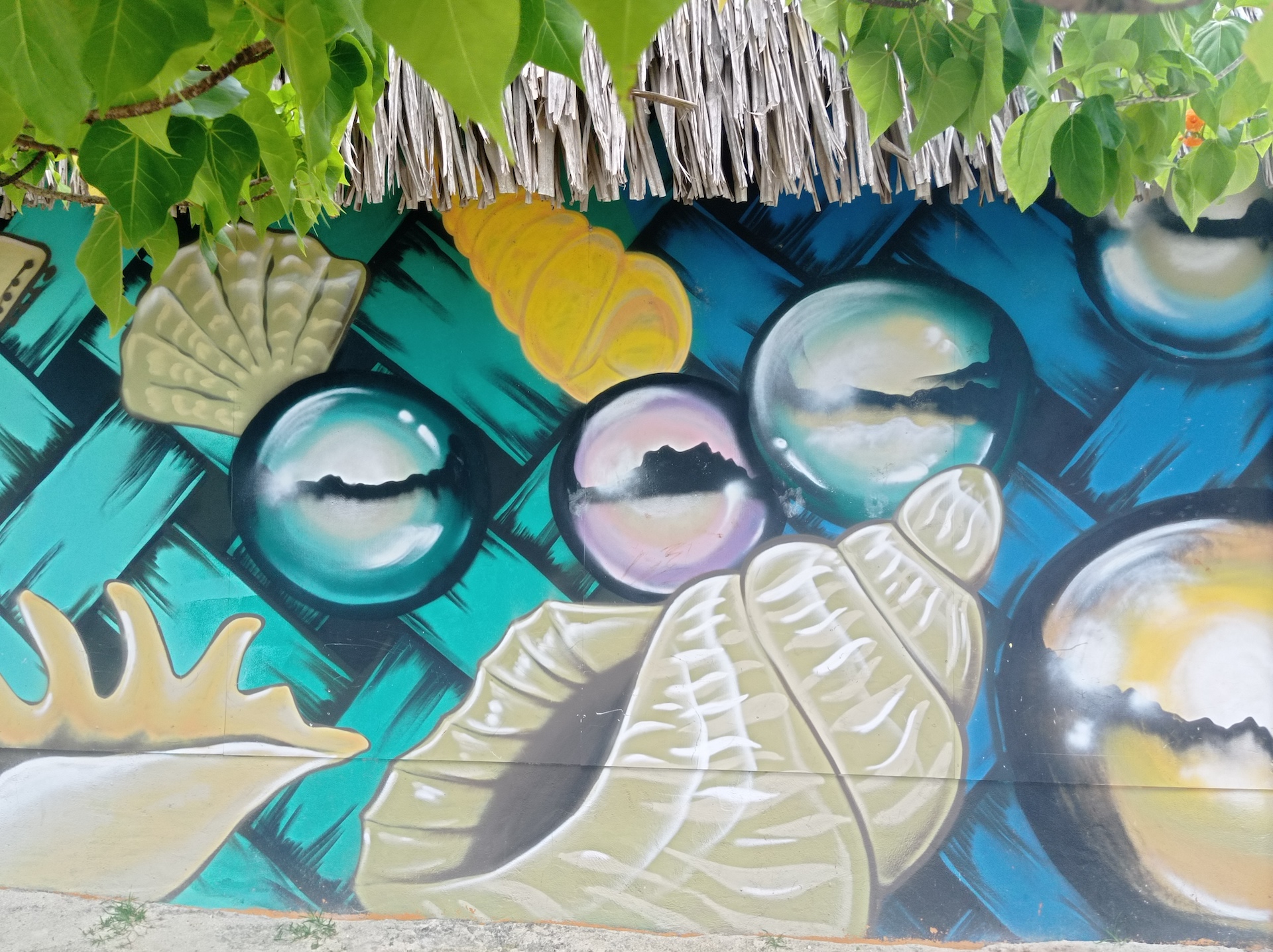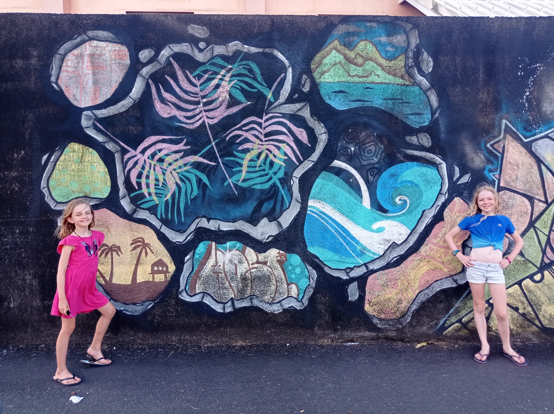 Pour la suite de la journée, nous avons prévu une balade artistique. En effet, nous avions remarqué il y a trois semaines que de nombreuses fresques ornent les murs de la ville. Après une recherche sur internet, nous apprenons qu’elles ont été réalisées durant le Ono’u Festival Tahiti qui a eu lieu à Papeete de 2014 à 2018. C’était un festival de street-art qui réunissait à la fois des artistes de renommée internationale et des artistes locaux fiers de leur culture. C’est, aujourd’hui, un véritable musée à ciel ouvert!