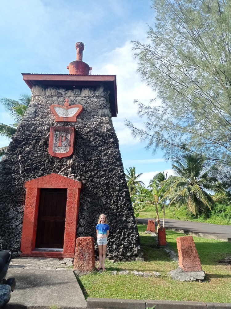 La visite est rapide car il n’y a pas grand chose à part cette tour à l’architecture très particulière. Elle a été construite en blocs de coraux cimentés ensemble et elle est surmontée d’une sorte d’amphore… Une jarre d’alcool (elle aurait la forme d’une bouteille de Bénédictine, la boisson préférée du roi) ? Il faut préciser que le roi est mort d’excès de boissons en 1891…