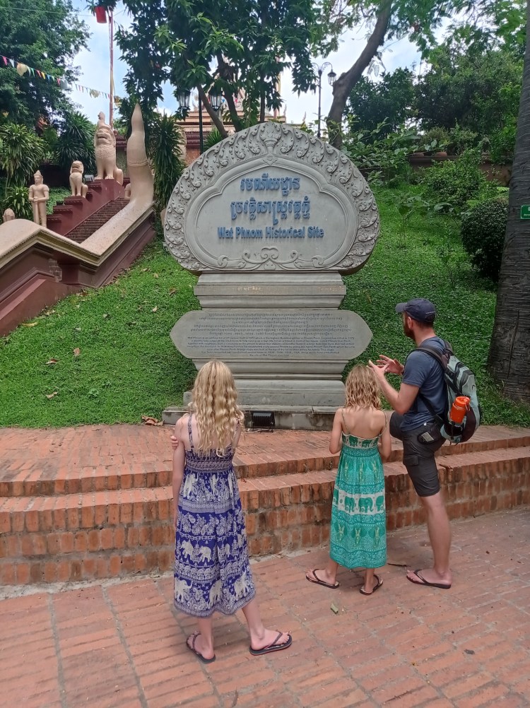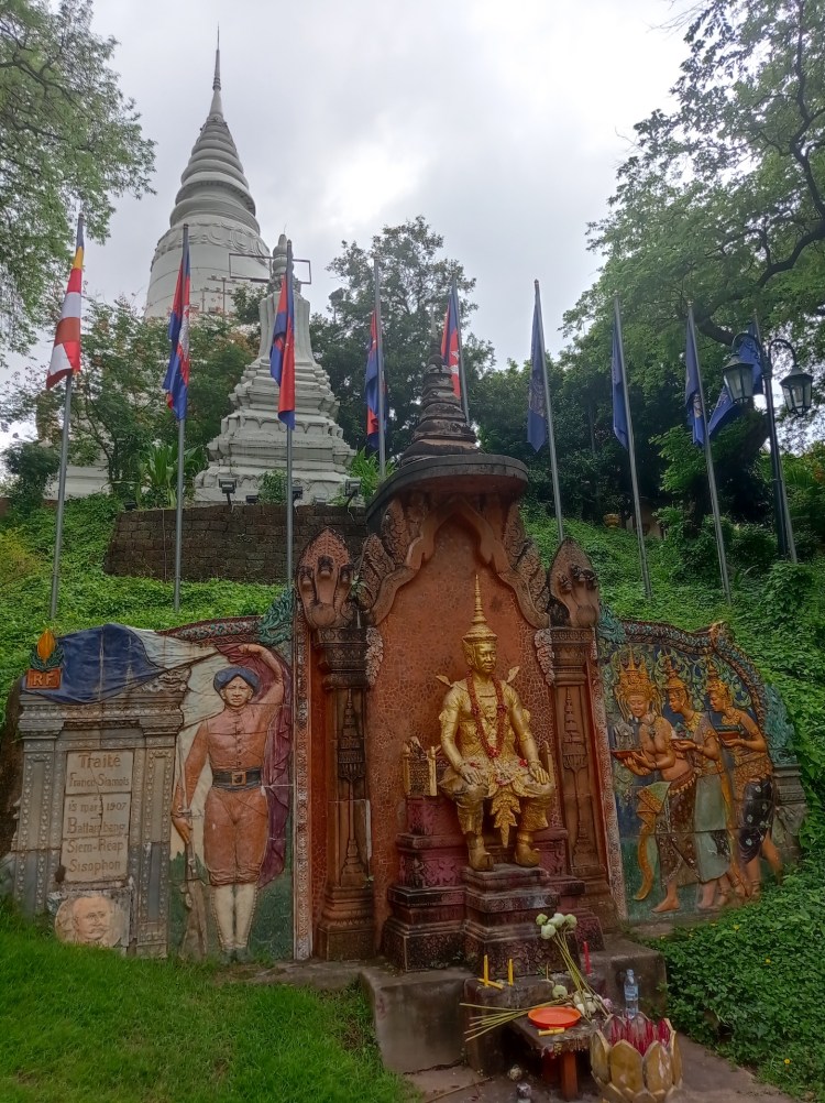 Après cette balade infructueuse, nous partons à la découverte de Wat Phnom, le temple de la colline, dont voici la légende: