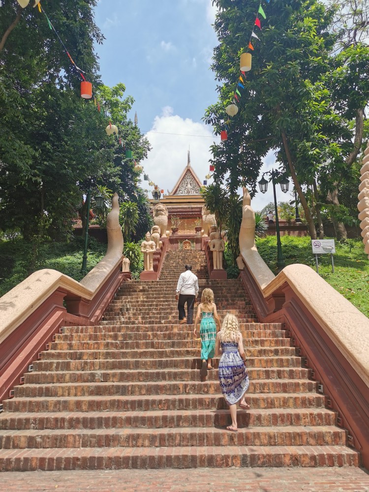 Nous voici donc à notre quatrième séjour à Phnom Penh 🙃. Nous avons retrouvé l’ancienne auberge de jeunesse, nous sommes donc de retour en terrain familier! Au programme aujourd’hui: tests PCR, découverte d’un dernier temple, visite du marché central et d’un centre commercial.