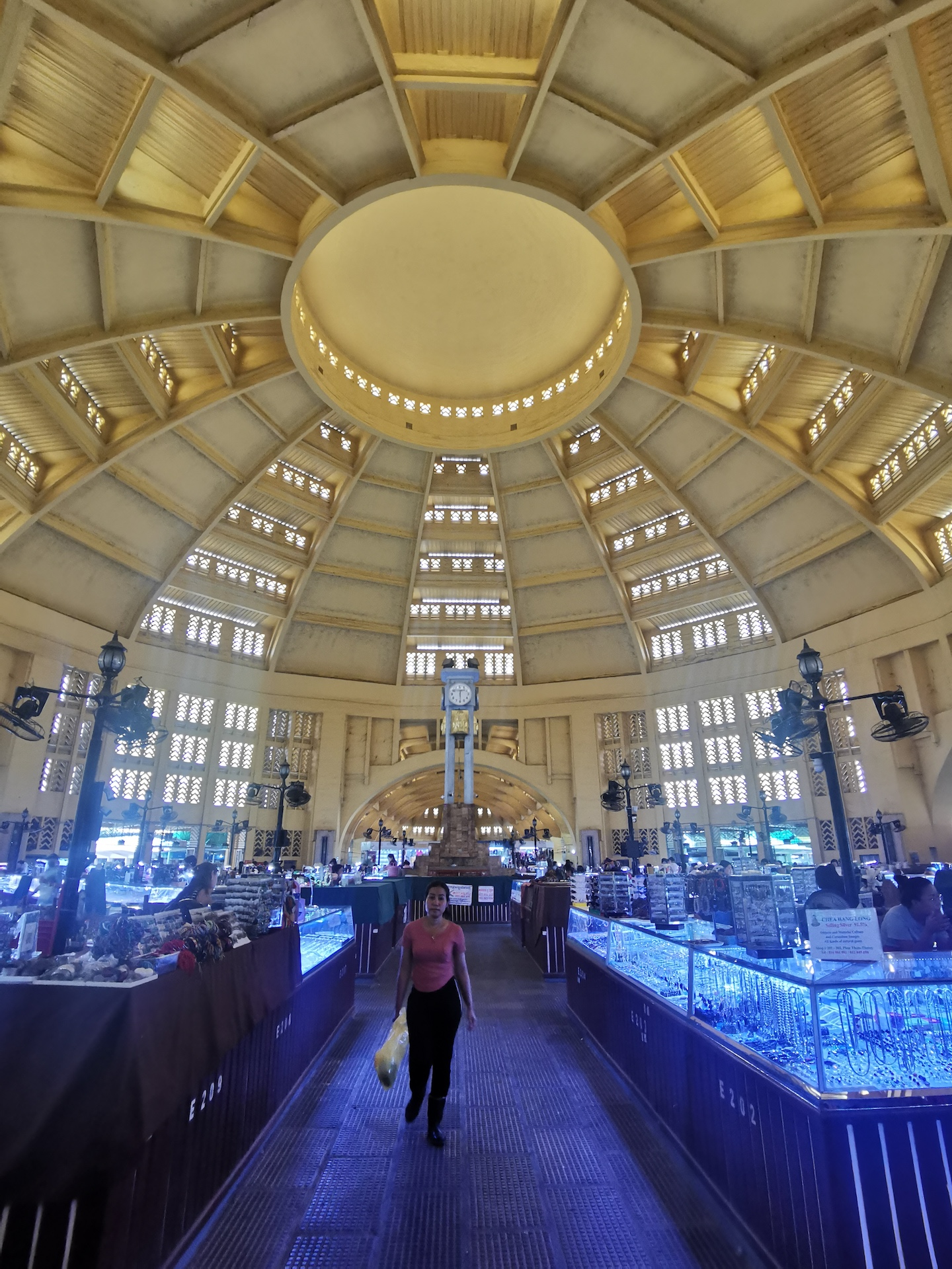 Suite à cette visite culturelle et historique, nous nous rendons au Central market, grand bâtiment dont le principal intérêt se trouve dans son architecture. Il est constitué d’un dôme entouré de quatre ailes, représentant les quatre bras de rivières confluant du Mékong. Cette structure est un des symboles de Phnom Penh. Nous en profitons aussi pour faire quelques achats de souvenirs dans les nombreuses boutiques d’artisanat qui s’y trouvent.