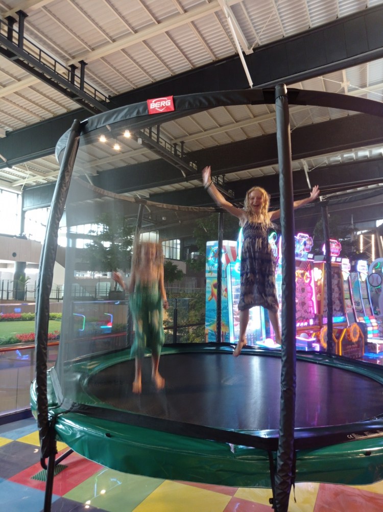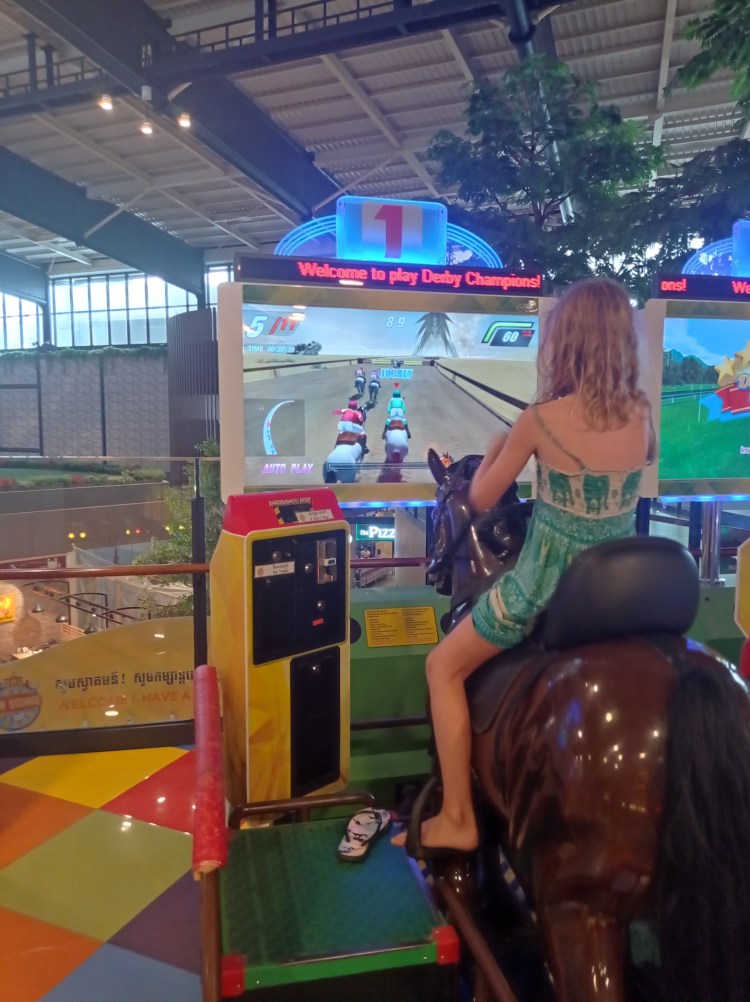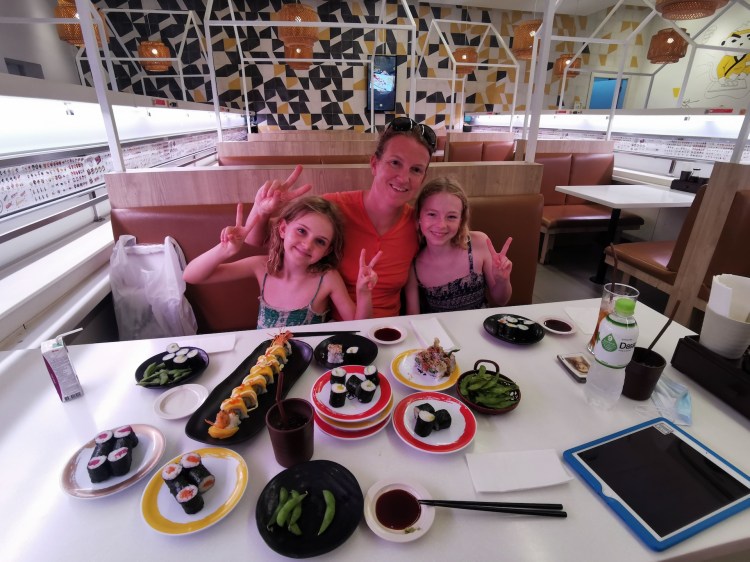 Après cette plongée dans les dédales du marché central, nous faisons un immense bond dans le futur pour nous rendre dans un grand centre commercial à l’occidentale. Les filles sont heureuses de retrouver la modernité: sushis et attractions!