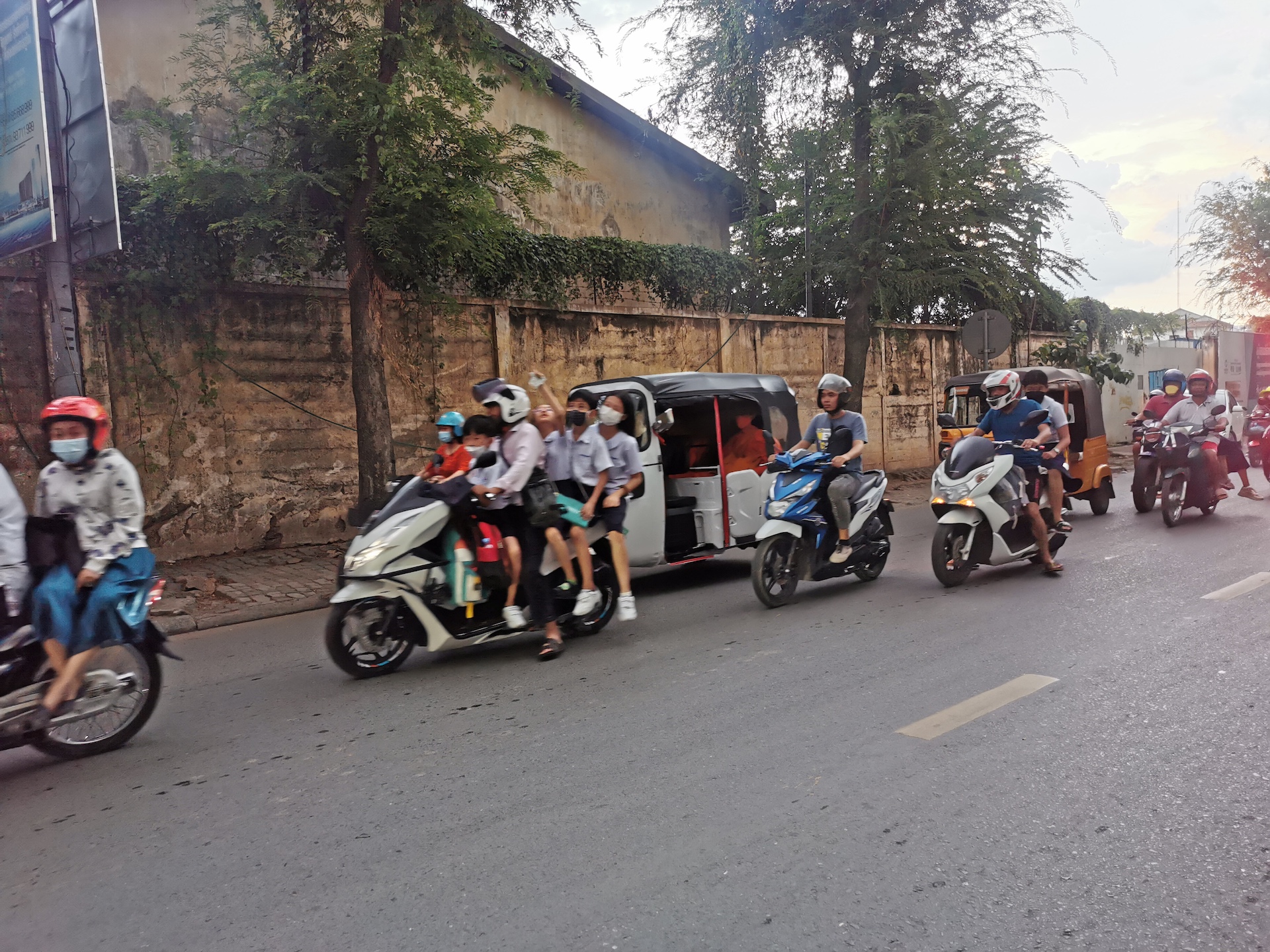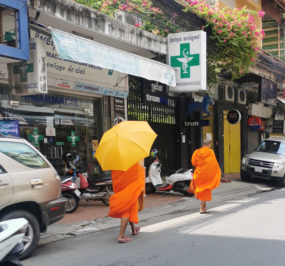 Après de nombreuses papouilles, quelques moments de lecture et de rédaction du blog entourés de chats, voici venue l’heure de quitter nos amis félins et de rejoindre l’aéroport. En chemin, nous profitons des dernières scènes de vie khmères: moines se promenant dans la rue, femmes en « pyjama » (c’est la seule photo qu’on ait réussi à prendre, mais c’était très courant dans la capitale!) ou encore famille entière sur un scooter (avec le père qui a un casque mais aucun des 4 enfants 😅… Oui, oui, vous avez bien lu, 4!!!).