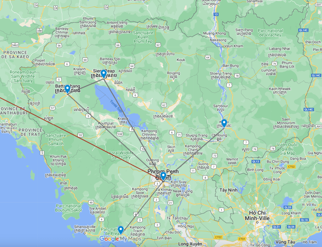 J’ai moins aimé: les nombreux retours « forcés » par la capitale Phnom Penh.