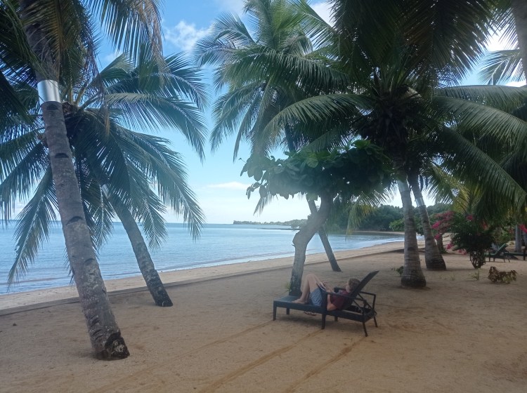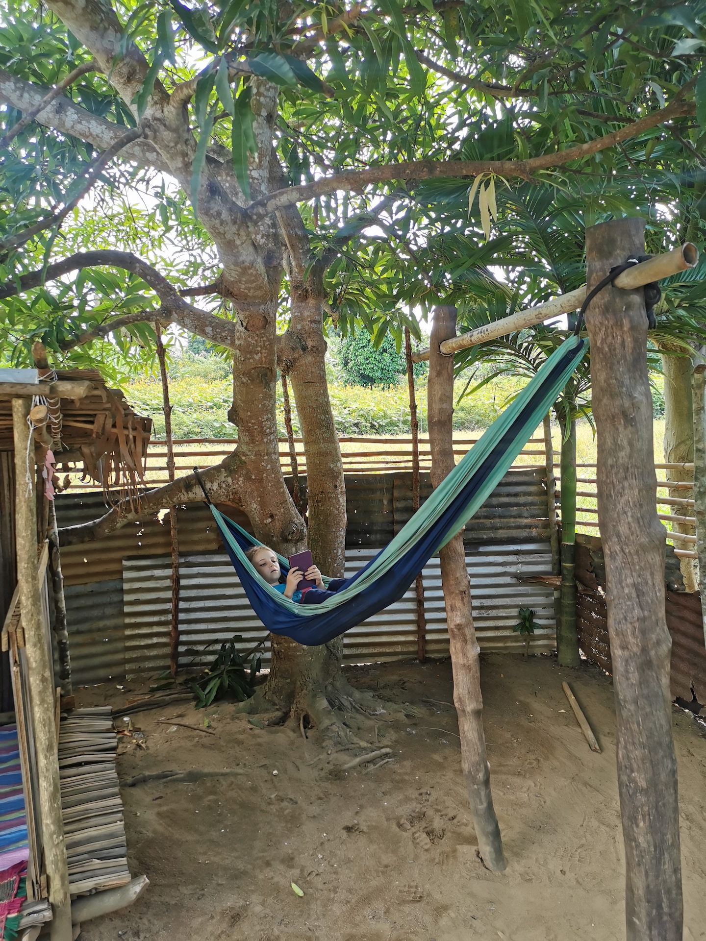 En cette journée, il y a deux salles, deux ambiances… D’un côté, celui des enfants et des papas, c’est matinée studieuse avec travail scolaire au menu puis après-midi de jeux. De l’autre, celui des mamans, c’est farniente 🏖️ à profiter encore de l’hôtel avant de retrouver la vie plus simple du village d’Ambatozavavy.