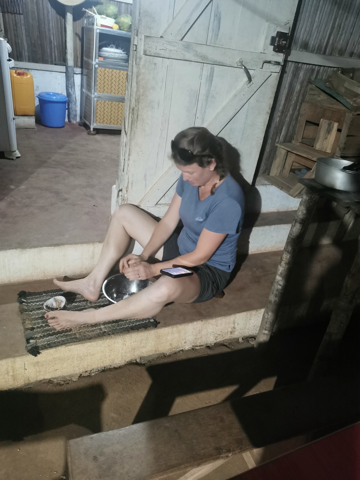 Le lendemain, c’est à nouveau une journée routinière à Ambatozavavy. Nous sommes aussi témoins de la précarité dans laquelle vit une grande partie des habitants du village. Alors que nous sommes en train de vaquer à nos occupations, nous entendons soudain des hurlements d’un enfant juste à côté. Il s’agit d’un petit garçon de 6-7 ans qui s’est ouvert le pied un peu plus loin. Alors que ses camarades et lui étaient en train de grimper à un arbre pour récolter quelques mangues, le petit garçon s’est planté un gros morceau de verre dans la plante du pied. La plupart des enfants du village que nous croisons vont nu-pieds. La blessure est profonde et pas bien belle… Nathalia s’occupe de désinfecter la plaie et elle appose un pansement. Lorsque la maman arrive enfin, elle commence par enguirlander son fils et à aucun moment elle ne le réconforte ou ne se soucie de savoir comment il va… Il n’y a pas de dispensaire au village et, en cas de soucis de santé, il faut se rendre à Hell-Ville. Pas de soins gratuits ou d’assurance maladie évidemment, alors très souvent les gens ne se déplacent que quand cela ne va vraiment pas. Il n’est donc pas rare de voir certains habitants du village venir chez les Rama car ceux-ci ont une trousse de premiers soins basique. Nathalia recommande à la maman de faire attention de garder la blessure le plus propre possible et d’éviter que son fils pose le pied par terre. Mais lorsque le petit garçon revient pour changer son pansement le lendemain, il marche comme d’habitude à pieds nus, et son pied est très sale. Nous espérons que la plaie ne va pas s’infecter… 😔