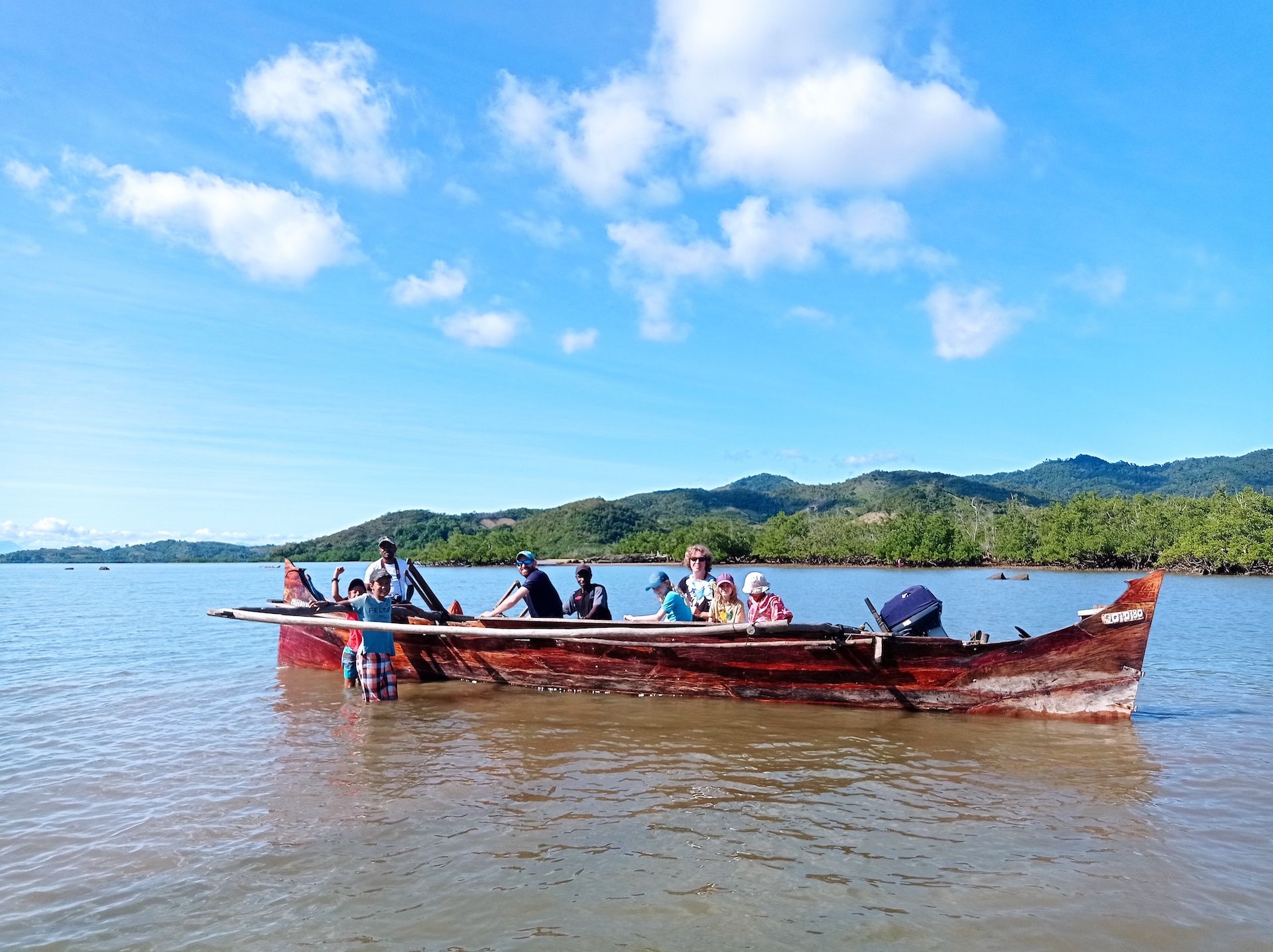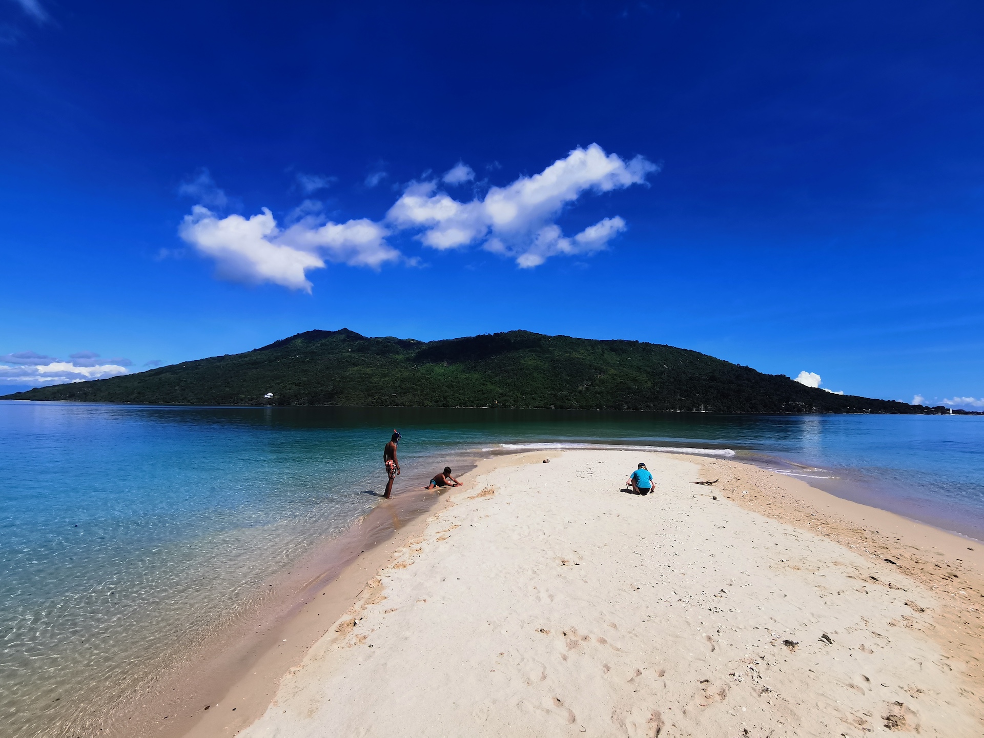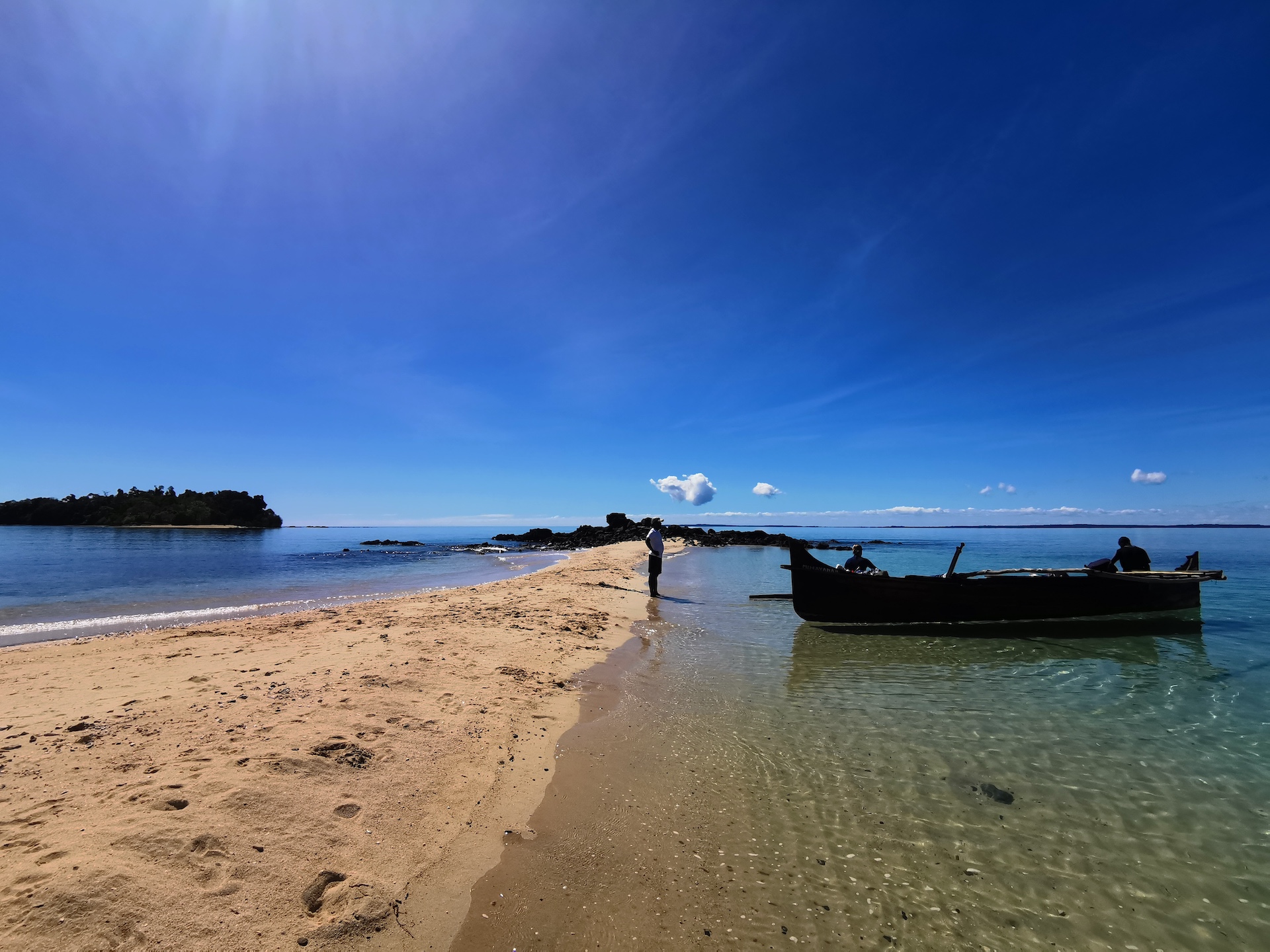 Au fur et à mesure des heures qui passent, nous voyons l’île se rétrécir petit à petit! En effet, la marée fait que la partie émergée de l’île disparaît peu à peu. C’est du coup le moment pour nous de remonter dans le bateau et de rejoindre l’île de Nosy Komba afin d’y prendre le repas de midi. Nous accostons au village d’Ampangorina et c’est dans ce cadre idyllique, quasiment les pieds dans l’eau, que nous dégustons de bons plats à base de poisson.