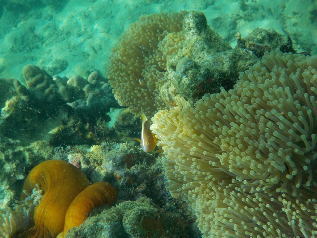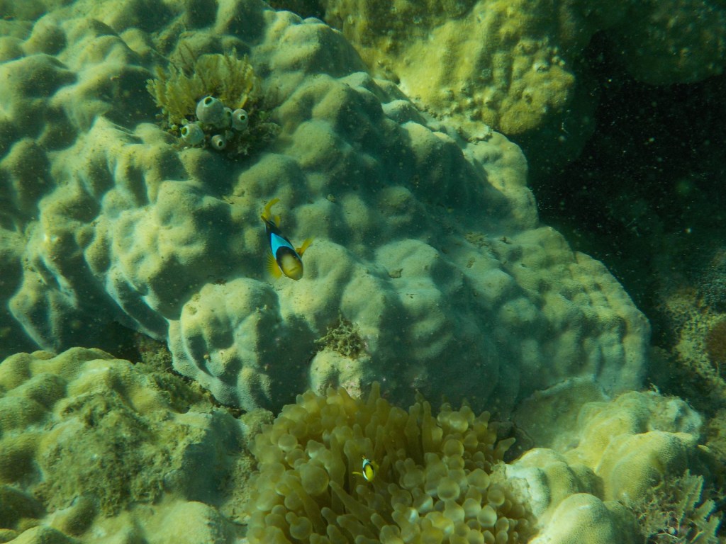 La qualité de l’eau nous permet aussi de faire un peu de snorkeling et nous nous régalons à chercher de jolis poissons et de beaux fonds sous-marins 🤿. Nous tombons sur quelques poissons clowns, de belles murènes et de jolis coraux. Un petit air de Polynésie qui nous ravit! Pourtant, assez vite, nous ressentons quelques petits picotements, comme si nous touchions des orties. Pas de grande douleur mais une sensation un peu désagréable qui va et vient. Il s’agirait d’une spécificité de l’océan indien: apparemment une sorte de plancton, irritant mais inoffensif.