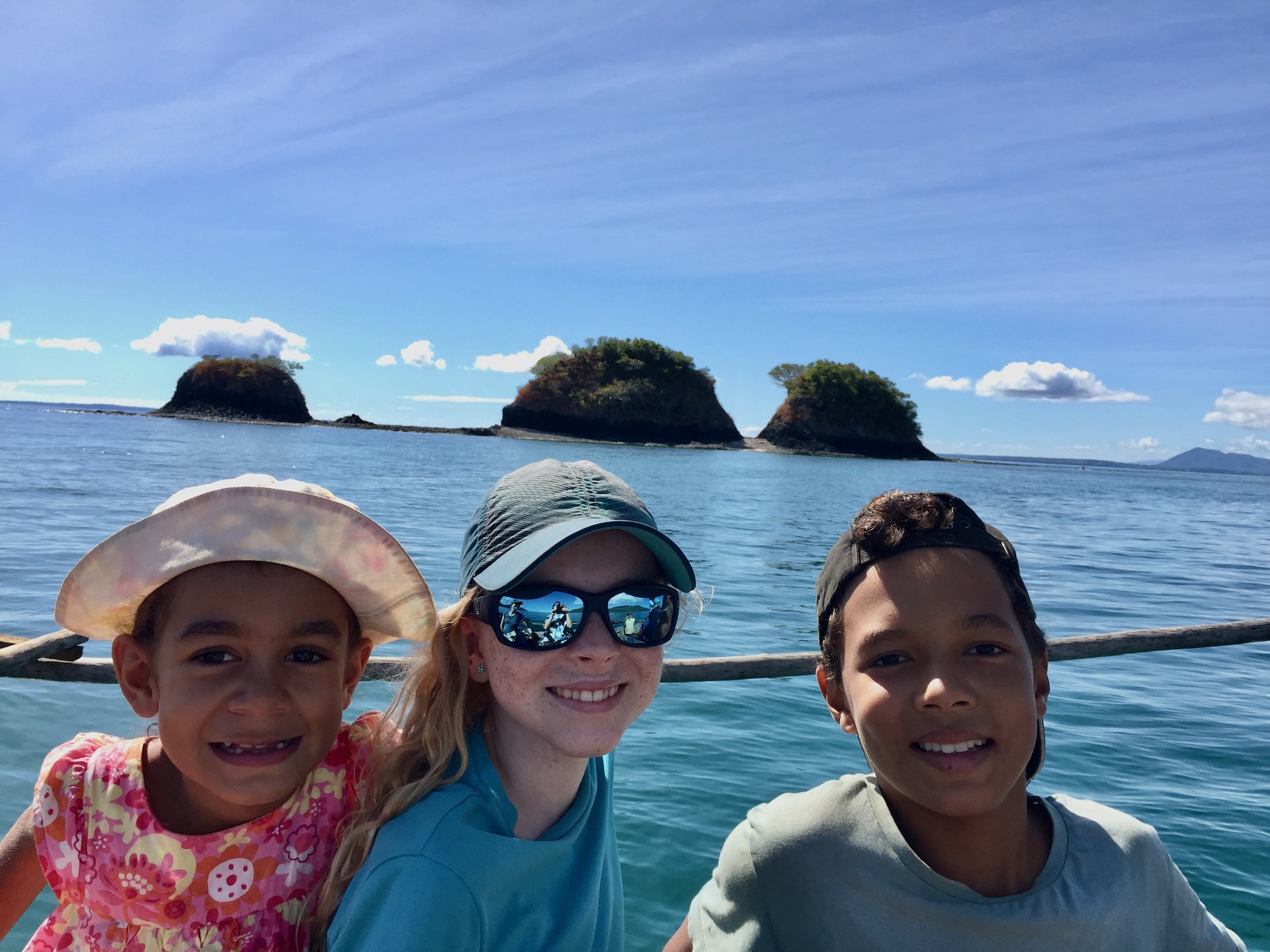Pour ce samedi, jour de week-end donc sans travail scolaire, nous avons prévu une sortie en dehors du village avec les Ramangalahy. Nous commençons par une sortie en bateau en direction de l’île de Nosy Komba, ce qui signifie l’île aux lémuriens, et qui abrite de nombreux makis macaco, considérés comme sacrés par les insulaires. C’est une île volcanique de forme circulaire, d’environ 6km de diamètre et dont le sommet culmine à plus de 622m.
