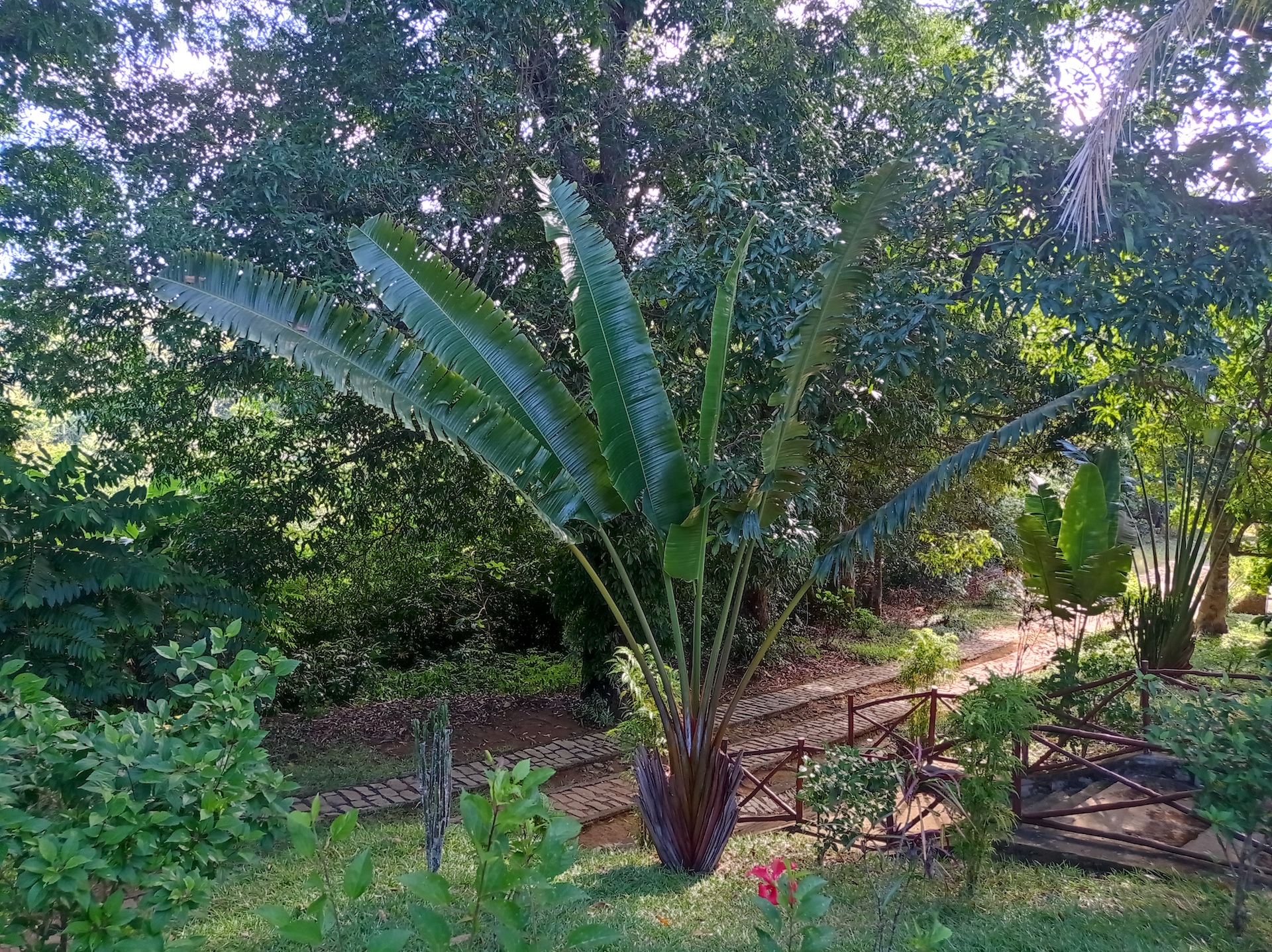 Nous terminons cette visite instructive par un petit tour dans le jardin qui se trouve à côté de l’usine et dans lequel poussent quelques variétés de plantes, telles que le citron kefir, très utilisé en cuisine. Nous y voyons aussi un arbre appelé l’arbre du voyageur, en forme d’éventail. Il est ici plutôt petit, mais nous en avons vu qui pouvaient atteindre plusieurs mètres de haut lors de nos divers trajets. Il est surnommé ainsi car il serait capable de stocker de l’eau à la base de ses feuilles et ainsi désaltérer les voyageurs déshydratés.