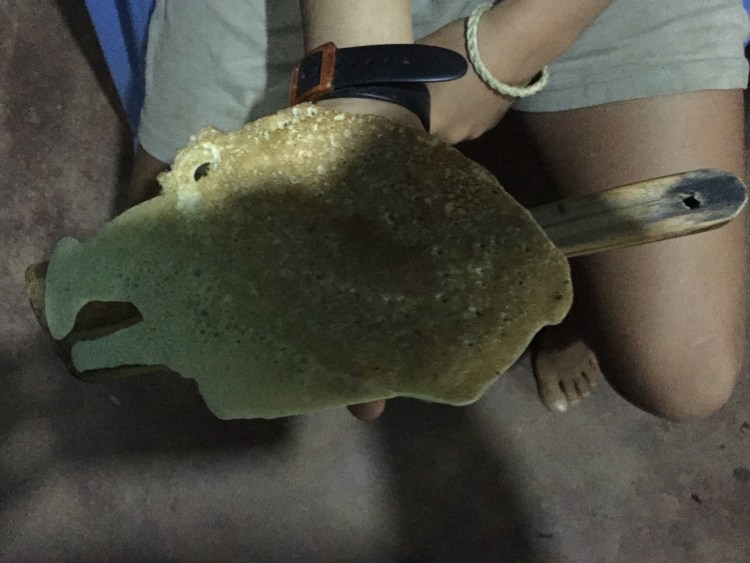 Une fois rentrés, c’est un repas de fête qui nous attend avec de délicieuses crêpes pour ce dernier repas que nous prenons chez les Ramangalahy. Tout le monde se régale et nous rigolons bien des quelques essais ratés, dont un qui nous fait penser à un dinosaure!