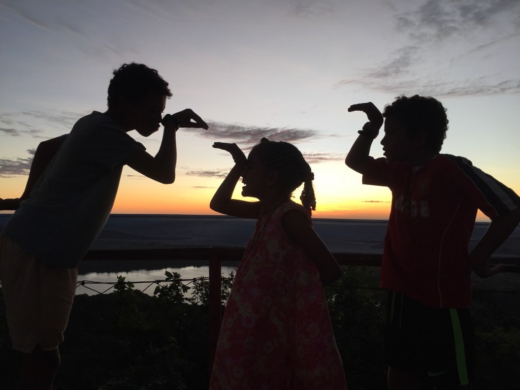 Le soleil se couchant, nous en profitons aussi pour prendre quelques photos de groupe ou de famille, puis nous nous amusons à tenter diverses poses en ombre chinoise, la nuit ne tardant pas!
