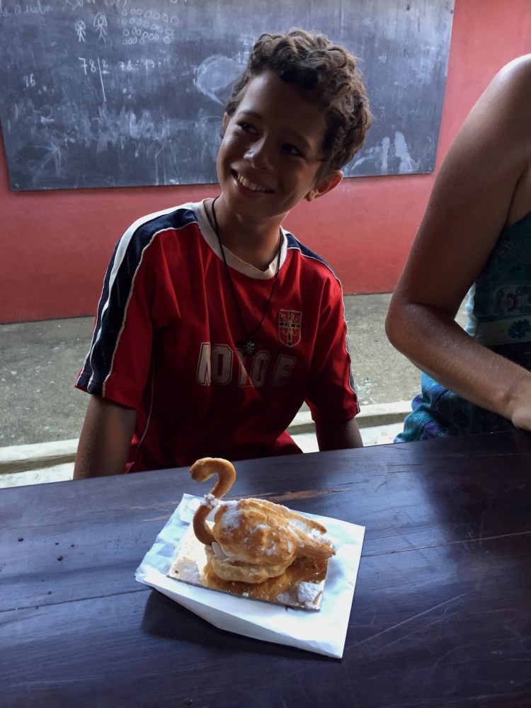 Aujourd’hui, c’est un jour spécial… C’est l’anniversaire d’Andry. Pour l’occasion, Nathalia est allée tôt ce matin dans une boulangerie des environs (pas facile à trouver!) pour chercher quelques viennoiseries.