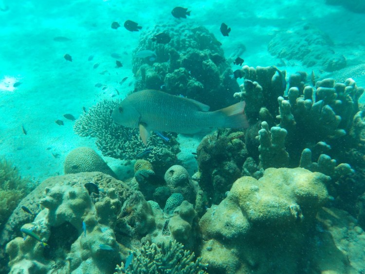 Par la suite, Philippe doit abandonner les plongeurs car ces derniers vont de plus en plus profond. Les fonds marins sont toujours aussi beaux et ils regorgent de différents spécimens de poissons, tous plus intéressants les uns que les autres 🐟🐠🐡. Sur le chemin du retour, Philippe est accompagné presque tout du long par des tortues marines. Il croise également des raies pastenagues, qui lui rappellent bien la Polynésie!