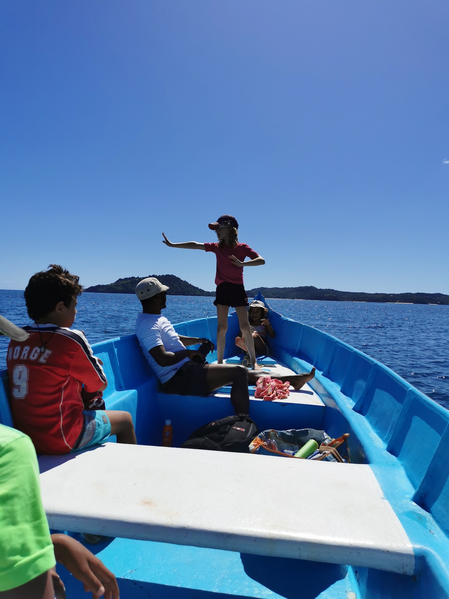 Vers 9:00, tout le monde embarque dans un petit bateau à moteur car nous allons tous rejoindre la petite île de Nosy Tanikely, d’où partiront les plongeurs. En effet, la baignade et le snorkeling y sont aussi possible. Nous sommes accompagnés par trois moniteurs de plongée qui vont accompagner les courageux.