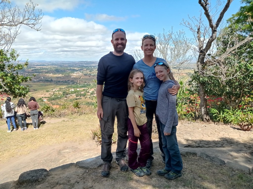 Si nous avons choisi l’île de Madagascar, au-delà de sa beauté et de sa richesse, c’est en grande partie car une des grandes soeurs de Gabrielle, Nathalia, et toute sa famille y vivent depuis maintenant presque deux ans. Ils sont partis comme missionnaires dans un petit village isolé sur l’île de Nosy Be, bien connue des touristes, tout au nord de la grande île. Mais avant de les rejoindre, nous atterrissons tout d’abord à Tana où nous avons la chance d’être logés chez les parents d’Hervé, le mari de Nathalia qui est lui-même malgache. Nous ne les avons pas vus depuis plus d’une dizaine d’années et nous nous réjouissons de les retrouver! Après d’énièmes tests covid au sein même de l’aéroport (eh oui, il en fallait un au départ et un autre sur place à l’arrivée… 🤯) qui heureusement sortent négatifs, nous retrouvons avec joie Henriette et Arthur, les parents, ainsi que Haingo, une des soeurs d’Hervé.