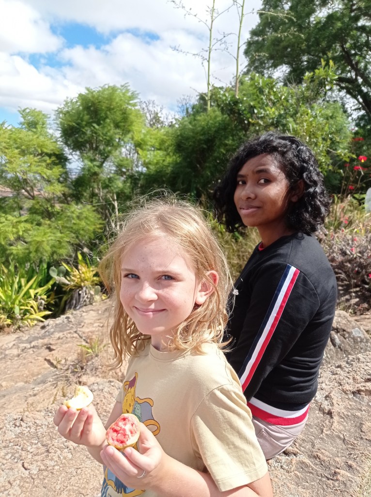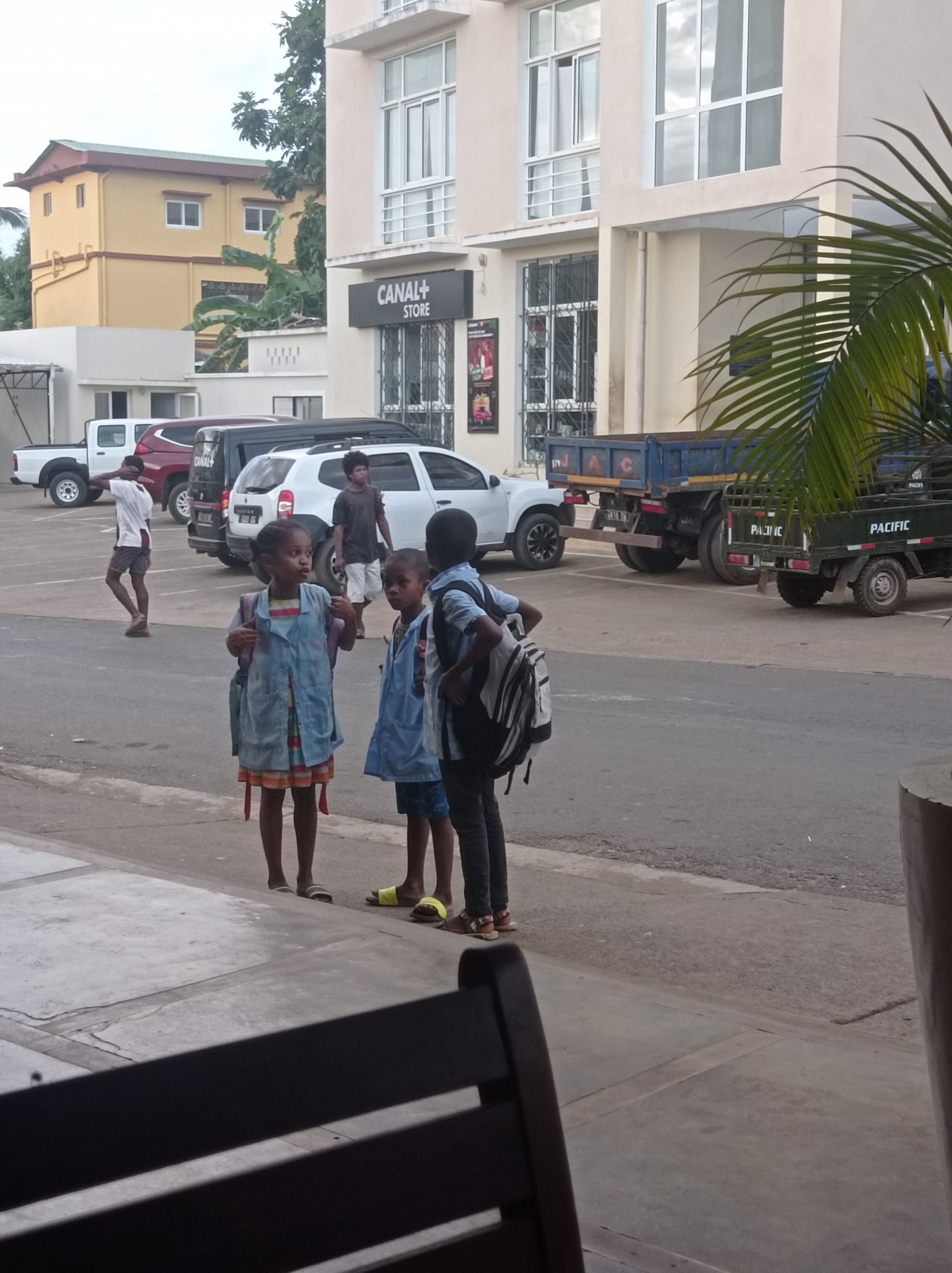 Etant revenu à Ambatozavavy un jeudi soir, nous reprenons le rythme scolaire dès le lendemain. Comme nous sommes vendredi, c’est jour d’école 🎓. Après nous être tous retrouvés pour le petit déjeuner, les enfants commencent à suivre leurs cours. Il faut reconnaître que c’est soudain beaucoup plus simple pour nous de convaincre les filles de se mettre au travail 😜 (leurs cousin.e.s s’y mettant sans rechigner).