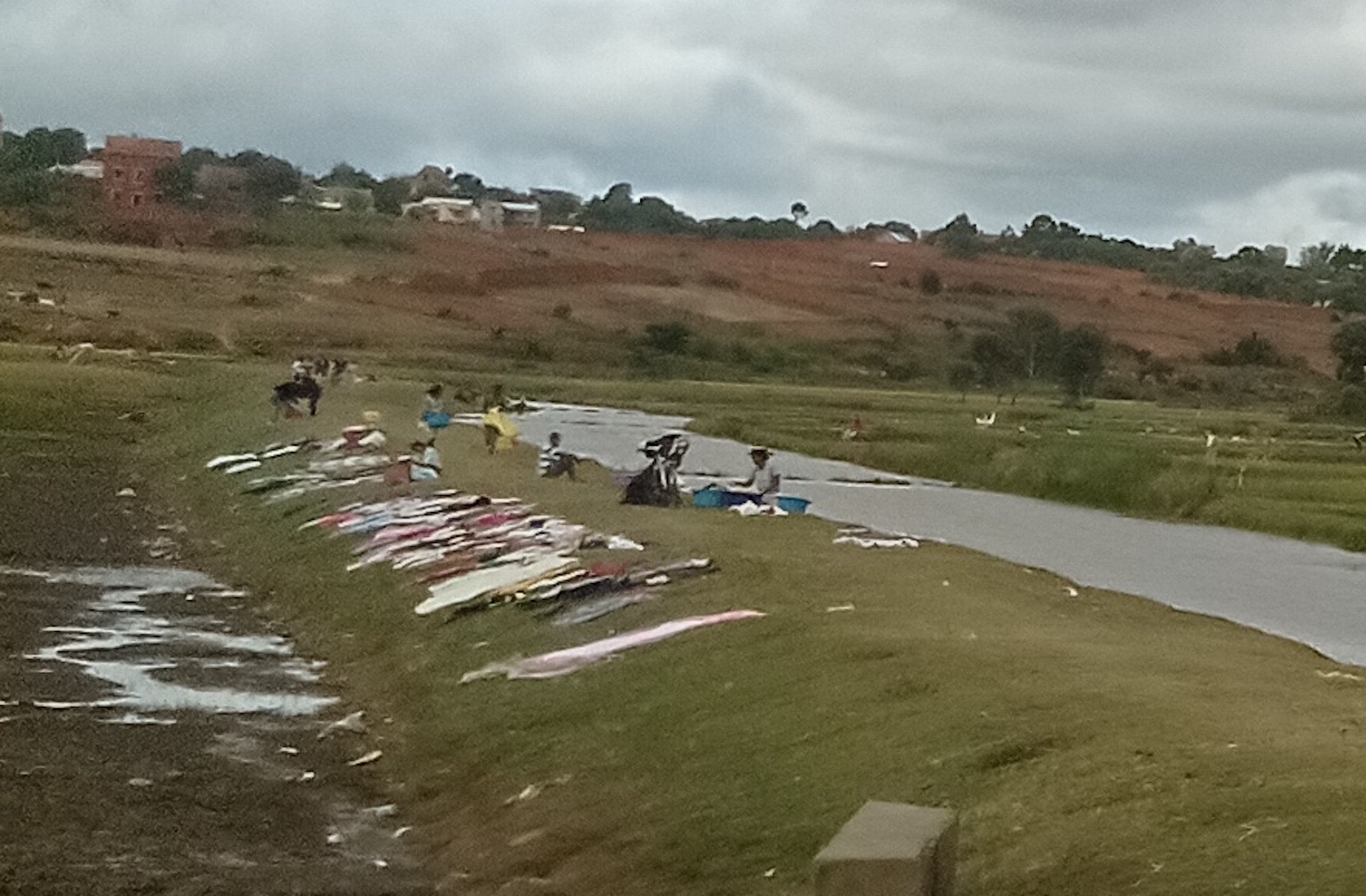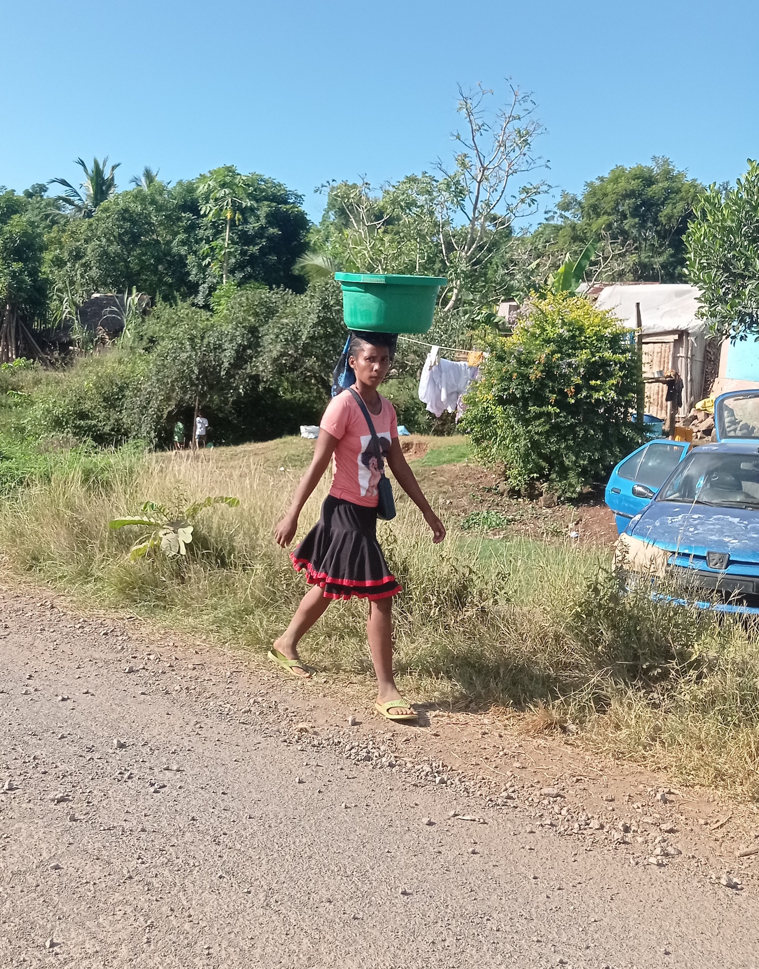 Nous vivons aussi une autre réalité de la vie du village et plus globalement de Madagascar: les coupures d’eau. Il faut savoir qu’il n’y a pas d’eau courante dans la maison des Rama, si ce n’est un petit robinet dans le jardin. Nous devons donc remplir des bidons, que ce soit pour la vaisselle, les toilettes, la douche ou encore l’eau que nous buvons (ils ont un système dans un grand récipient avec un filtre pour purifier l’eau qu’ils boivent). De notre côté nous avons de la chance, Rosina a un système de pompe électrique qui permet d’avoir de l’eau courante à l’étage où nous logeons. Mais un jour, plus de débit… Nathalia et Hervé nous expliquent que cela arrive régulièrement et que cela ne dure généralement pas trop longtemps. Etant habitué, tout le monde a toujours plusieurs bidons d’eau en réserve pour tenir jusqu’à la remise en service. La raison de ces coupures est le plus souvent due à un bouchon au niveau de la captation d’eau de la source: branches, cailloux, etc. Le retour de l’eau dépend en général de la rapidité à laquelle la mairie envoie quelqu’un pour s’en occuper. Mais cette fois, la coupure va durer plusieurs jours… Apparemment beaucoup plus longtemps que d’habitude. Du coup, nous arrivons petit à petit au bout des réserves… Mais heureusement, une autre source d’eau se trouve un peu à l’extérieur du village avec un puit auquel les gens peuvent se rendre. Même si cela n’a jamais été catastrophique, c’est une situation peu agréable de rationnement et d’incertitude. Surtout qu’aucune information n’est fournie par les autorités du village.