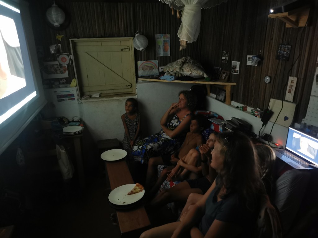 Enfin nous revenons au village et nous terminons cette journée par une soirée ciné-pizza. Une femme fait des pizzas dans le village et comme elles sont très bonnes, les Rama ont pris l’habitude de faire une soirée ciné-pizza de manière hebdomadaire. Pour ce qui est de la technique, c’est beamer et drap blanc dans leur salon. Pour ce soir, c’est Sister Act qui est à l’affiche, un classique que les enfants ne connaissent pas encore. Tout le monde apprécie le film et va se coucher en fredonnant les chansons de Whoopi Goldberg et compagnie.
