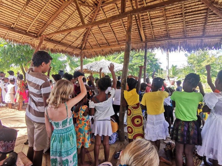 Enfin, il est l’heure de rentrer à Ambondrona et de laisser derrière nous le cadre merveilleux que l’île de Nosy Sakatia nous offre. Durant le trajet retour, nous avons la chance d’assister à une représentation de danse et de chants, offerte par Estelle et Mialy 😂.