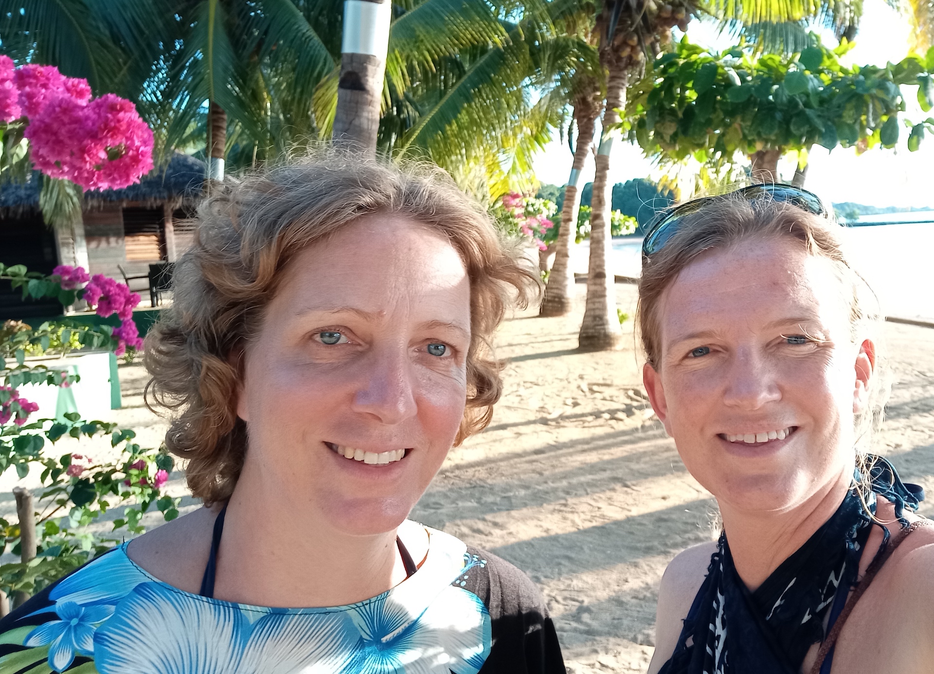 Arrivés sur une île magnifique et quasiment déserte, nous commençons par payer nos droits d’entrée puis le petit groupe suit une formation théorique pour la plongée qui va suivre. Un rappel bienvenu pour Gabrielle, qui appréhende un peu de ne plus se rappeler tout ce qu’il faut! A la base, ils avaient décidé que Gabrielle n’aurait pas de « budy » attribué et qu’elle dépendrait de celui attribué à Nathalia. Toutefois, Nathalia étant en « baptême » de plongée, le moniteur doit constamment la tenir… ce qui compliquerait les choses si Gabrielle venait à avoir un problème sous l’eau 😅! Pour finir, ils ont trouvé un troisième moniteur qui plongera avec eux. Rija et Andry plongeront l’un à la suite de l’autre, donc ils peuvent se partager le même moniteur.