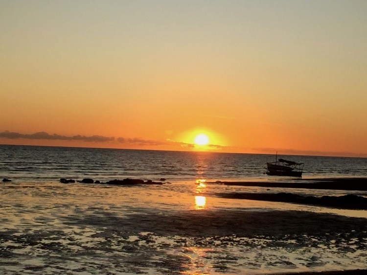 Après l’ambre, nous poursuivons aujourd’hui avec l’émeraude. Lors de notre passage à la plage de Ramena, Hervé a négocié avec des locaux pour organiser une sortie en bateau sur la mer d’émeraude. Les prix proposés défient toute concurrence mais l’heure de rendez-vous pique un peu 😫… Nous nous retrouvons à 6h30 au port pour embarquer sur un petit voilier typique. La raison de cette heure matinale est à chercher du côté des vents et des courants qui forcissent en milieu de matinée ainsi qu’en milieu d’après-midi et qui rendent la navigation compliquée. La marée complexifie également la chose car, à certains moments de la journée, une portion d’un passage devient très peu profonde et elle empêche le passage des bateaux.
