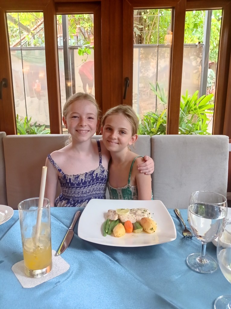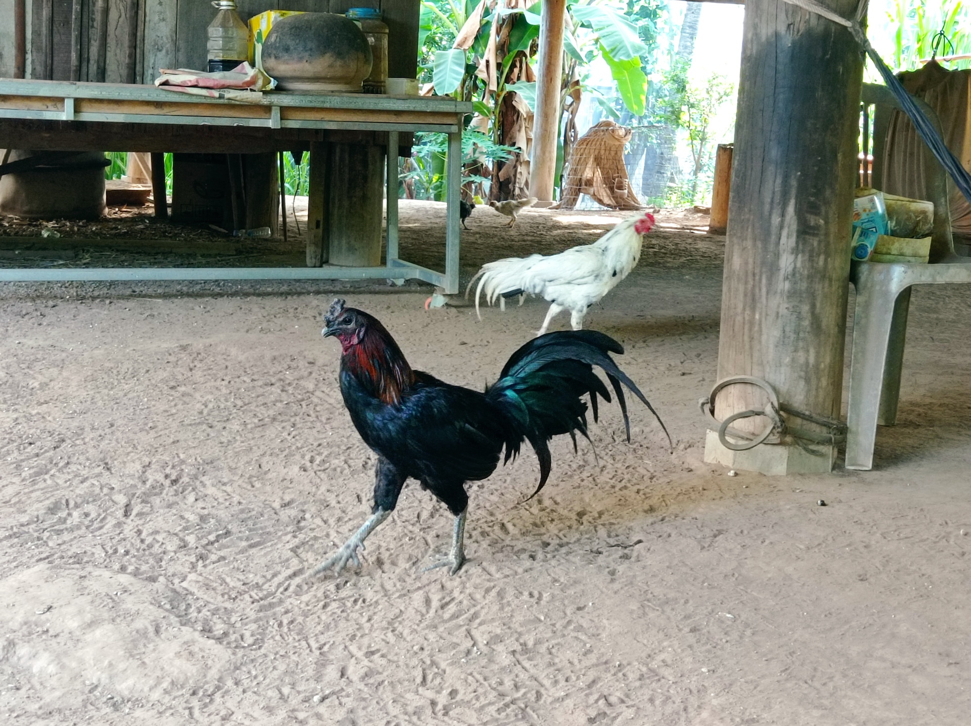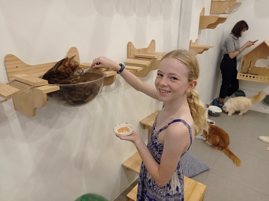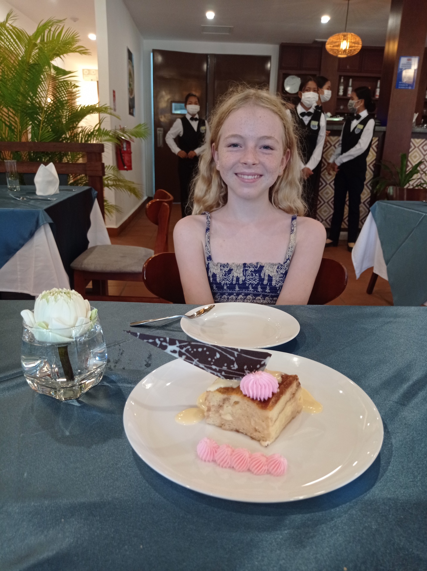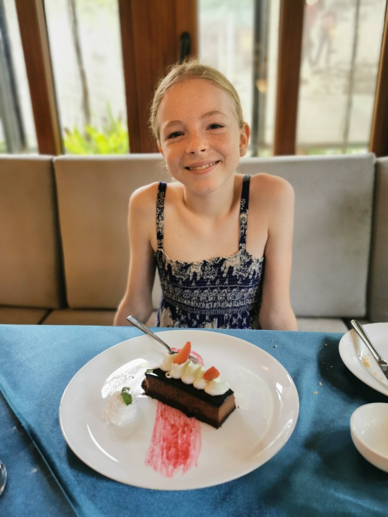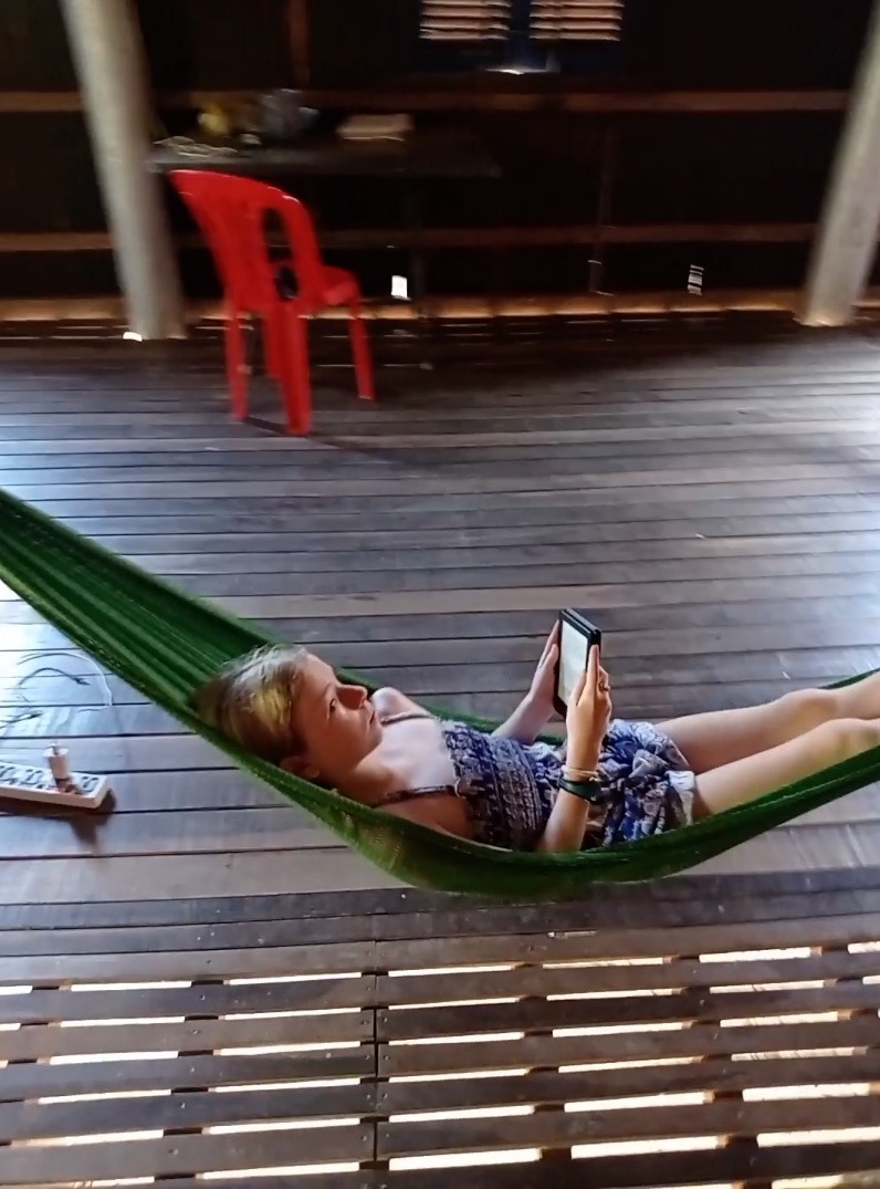 A la fin de la sortie, nous dînons dans un restaurant tout simple sur la terre ferme avant de reprendre la barque pour rejoindre l’île de Koh Trong en milieu d’après-midi Une fois chez Virek, nous en profitons pour nous reposer un peu, lire, avancer le blog, faire un peu d’école et, bien sûr, jouer avec Ficelle 🐱.