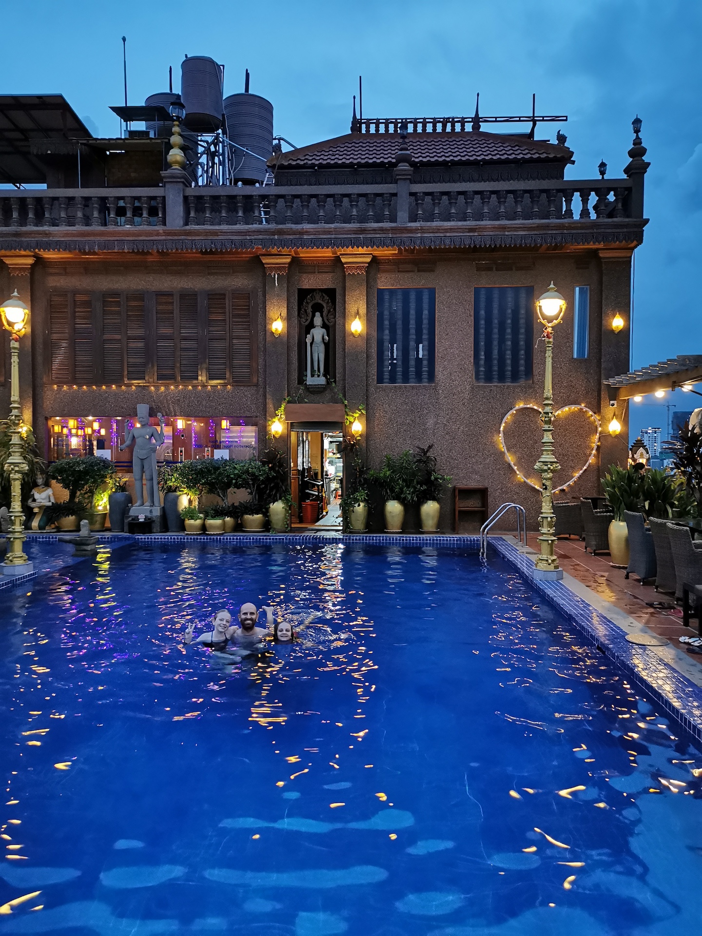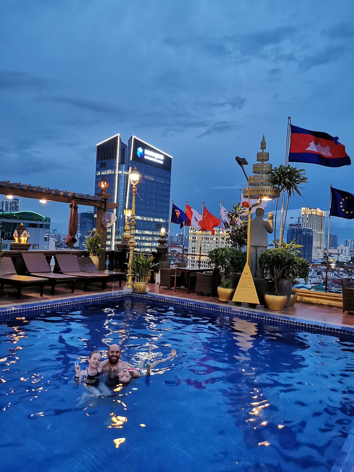 Au lieu d’une arrivée en début d’après-midi à Phnom Penh, c’est à la nuit tombante que nous finissons par rejoindre notre hôtel. Heureusement que nous n’avions pas prévu de visite aujourd’hui !