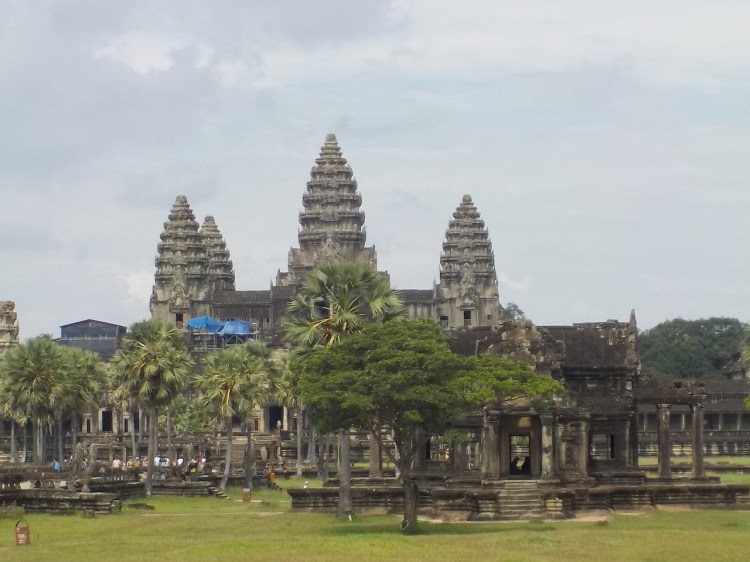 C’est parti pour un trajet de plusieurs heures (environ 6h), qui doit nous mener jusqu’à la ville de Kratie, dans le nord-est du Cambodge. Nous avons longuement hésité à nous rendre dans les régions plus reculées et montagneuses du pays mais, faute de temps, nous devons faire une croix sur les provinces telles que le Mondolkiri ou le Ratanakiri. Un des intérêts de ces régions est aussi de se rendre dans des sanctuaires pour éléphants, mais comme nous avons déjà vécu une incroyable expérience avec les pachydermes chez Baan Mama, en Thaïlande, nous ne ressentons pas la nécessité de nous y rendre. A noter aussi qu’il s’agit de provinces dans lesquelles il est conseillé de se protéger de la malaria. Pour deux-trois jours, nous préférons passer notre tour, d’autant plus que nous allons devoir prendre un traitement antipaludéen pour notre séjour à Madagascar.